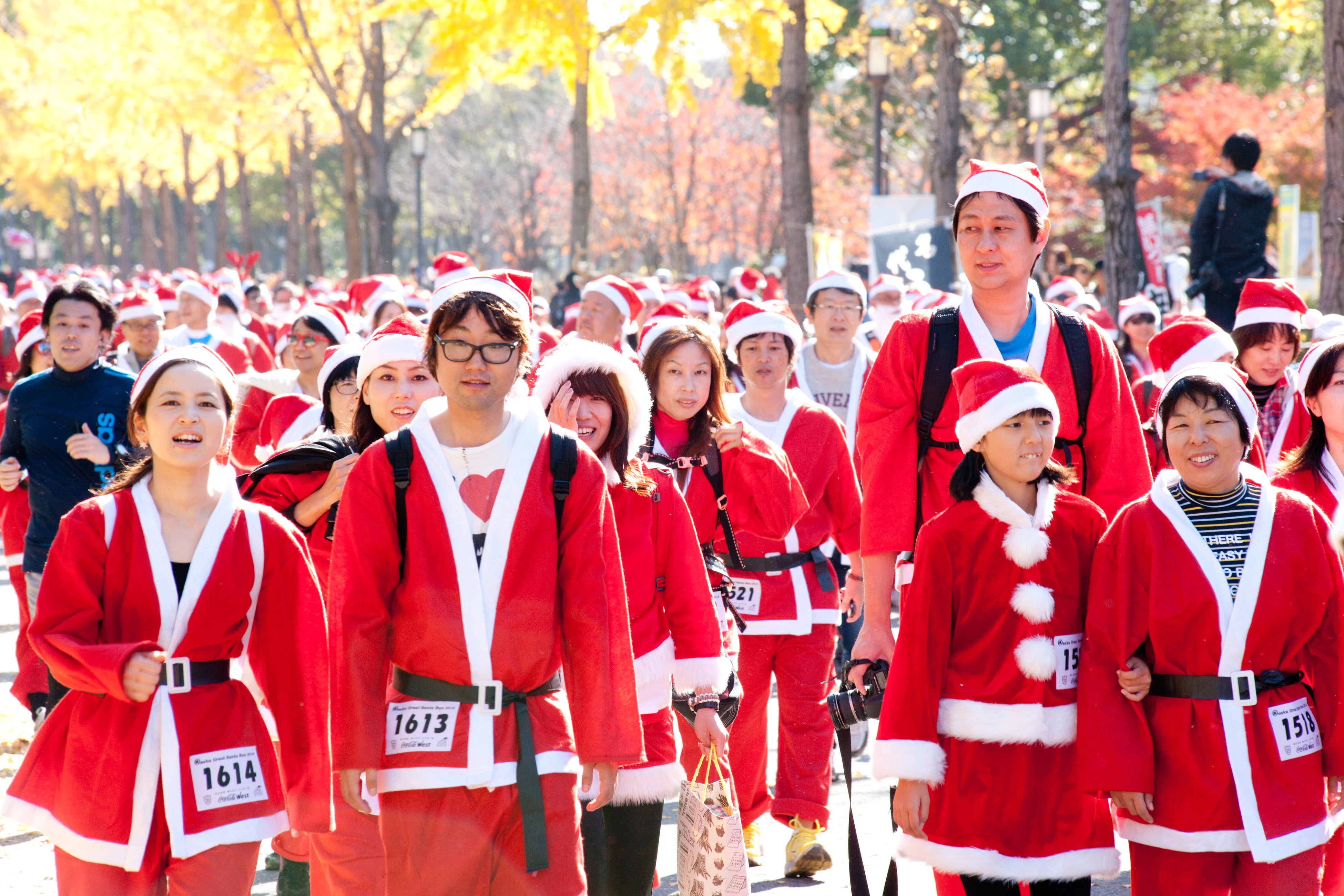 サンタクロースの衣装を着て、楽しくウォーキングをすることで、その参加費を活用して病気とたたかう子どもたちにクリスマスプレゼントを贈るチャリティーイベントです。世界各地で開催されています。