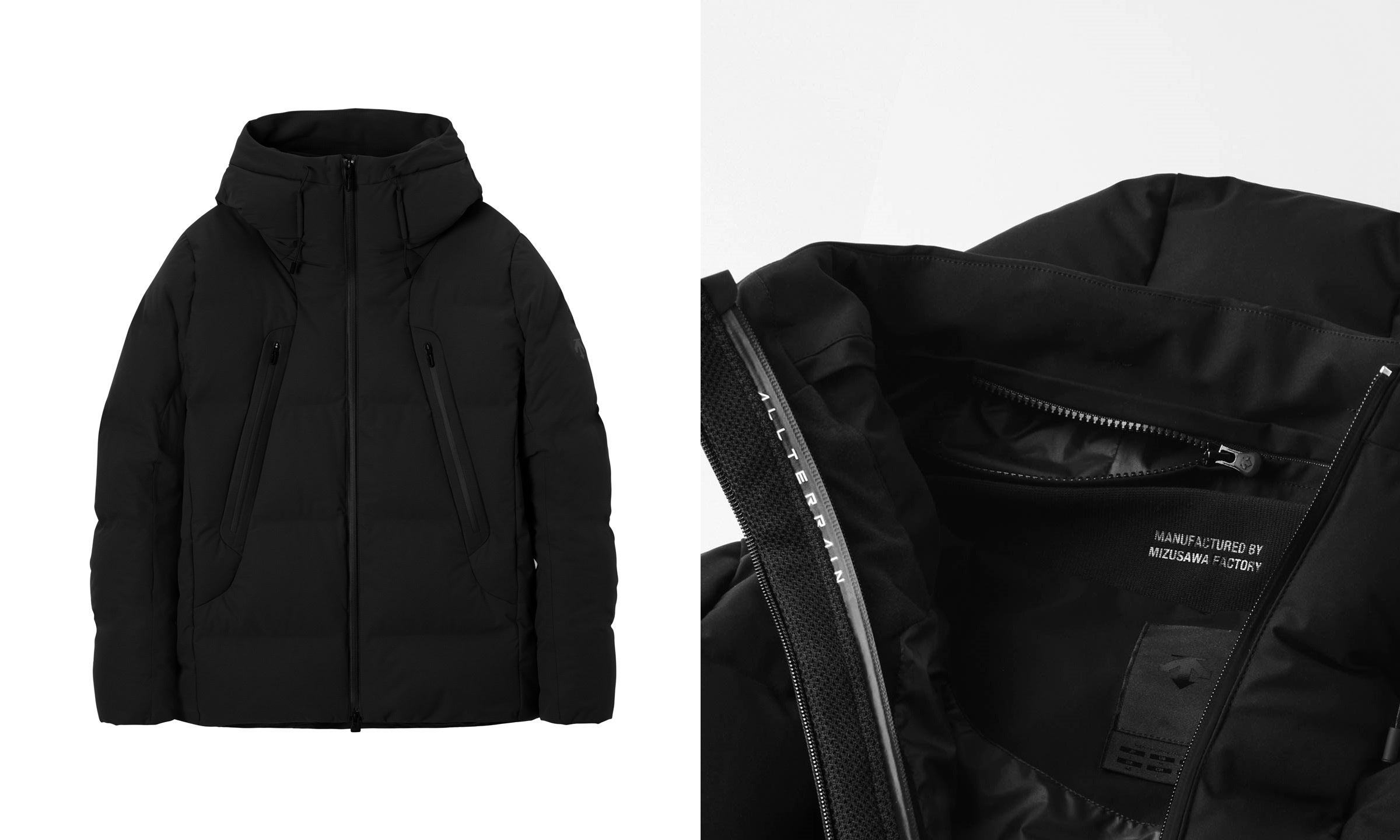 2008年に誕生した「水沢ダウン」は、デサントのモノづくりの象徴です。冬季国際大会に向かう日本選手団のため、厳寒・多雨雪の開催地に耐える防寒ウェアとして開発されました。ダウン表面の縫い目を極力減らす新しい発想で、水の浸入を防ぎ、温かい空気を逃さない防水性・保温性に優れたジャケットです。すっきりした見た目とは裏腹に、製作には一般的なアウターの4倍近い約280の工程が必要であり、そのほとんどが手作業です。曲線パーツの縫製、扱いの難しい素材、やり直しの利かないシームテープの圧着など、高度な技術と正確さが求められる難易度の高い作業が必要です。このとてつもない手間と高度な縫製技術を実現できるのは、機能性が高く複雑な構造の生産を長らく手がけてきた、熟練の技と設備を備えた水沢工場だからこそです。今後も水沢工場にしかできない高い付加価値の商品の開発・生産を、よりクリエイティブに、より効率的に行ってまいります。