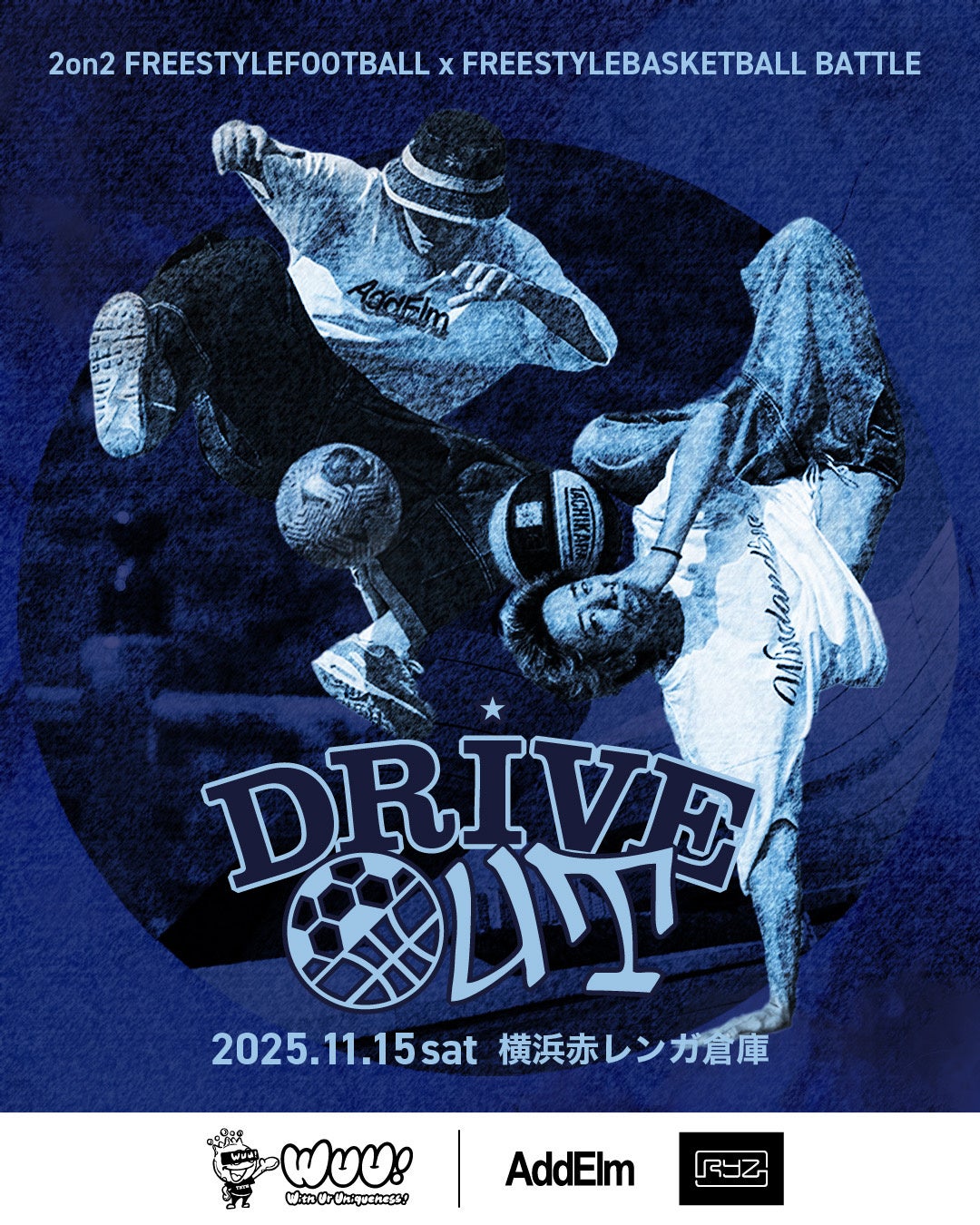 フリースタイルフットボールとフリースタイルバスケットボールの融合による2on2新大会「DRIVE OUT」が誕生。記念すべき初開催の舞台で、日本一のフリースタイラーコンビの座を勝ち取るのは果たして誰か︖