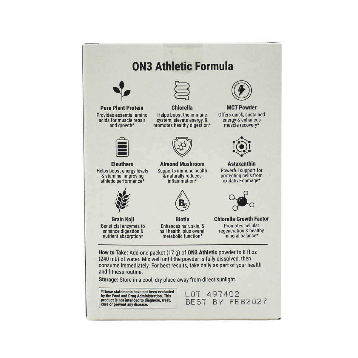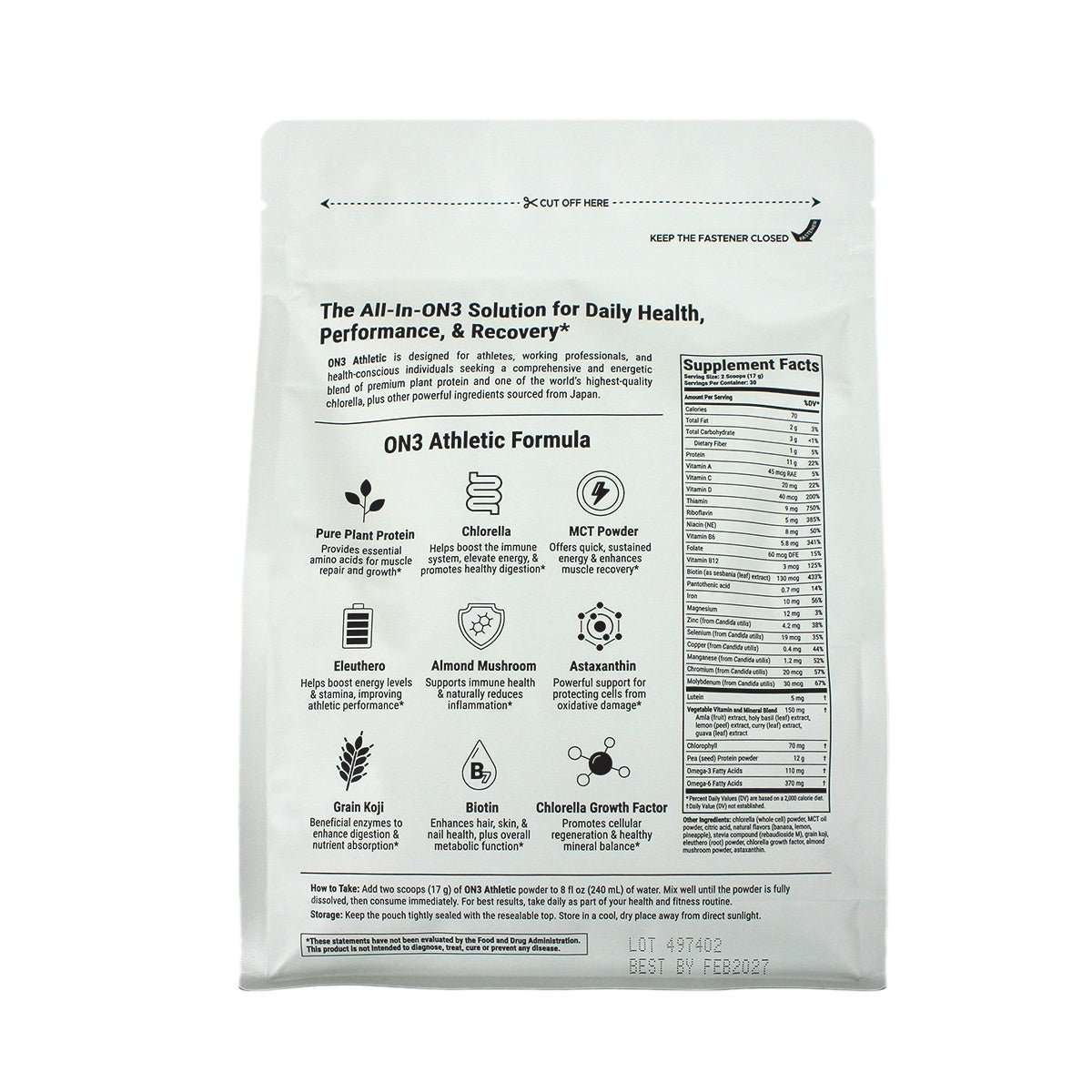 当社では2019年から本格的にアスリートのコンディショニングサポートに注力しており、商品に対する多くのフィードバックを頂いてきました。その中でも持続的なエネルギー/スタミナをサポートする商品を求めるお声を沢山頂き開発したのがON3 Athleticになります。クロレラにプラスアルファの成分を加えたオールインワン植物性グリーンプロテインがON3 Athleticです。ON3 Athleticは現在はアメリカ国内及び公式サイトでの販売となっておりますが、日本での販売開始に向け準備して参ります。