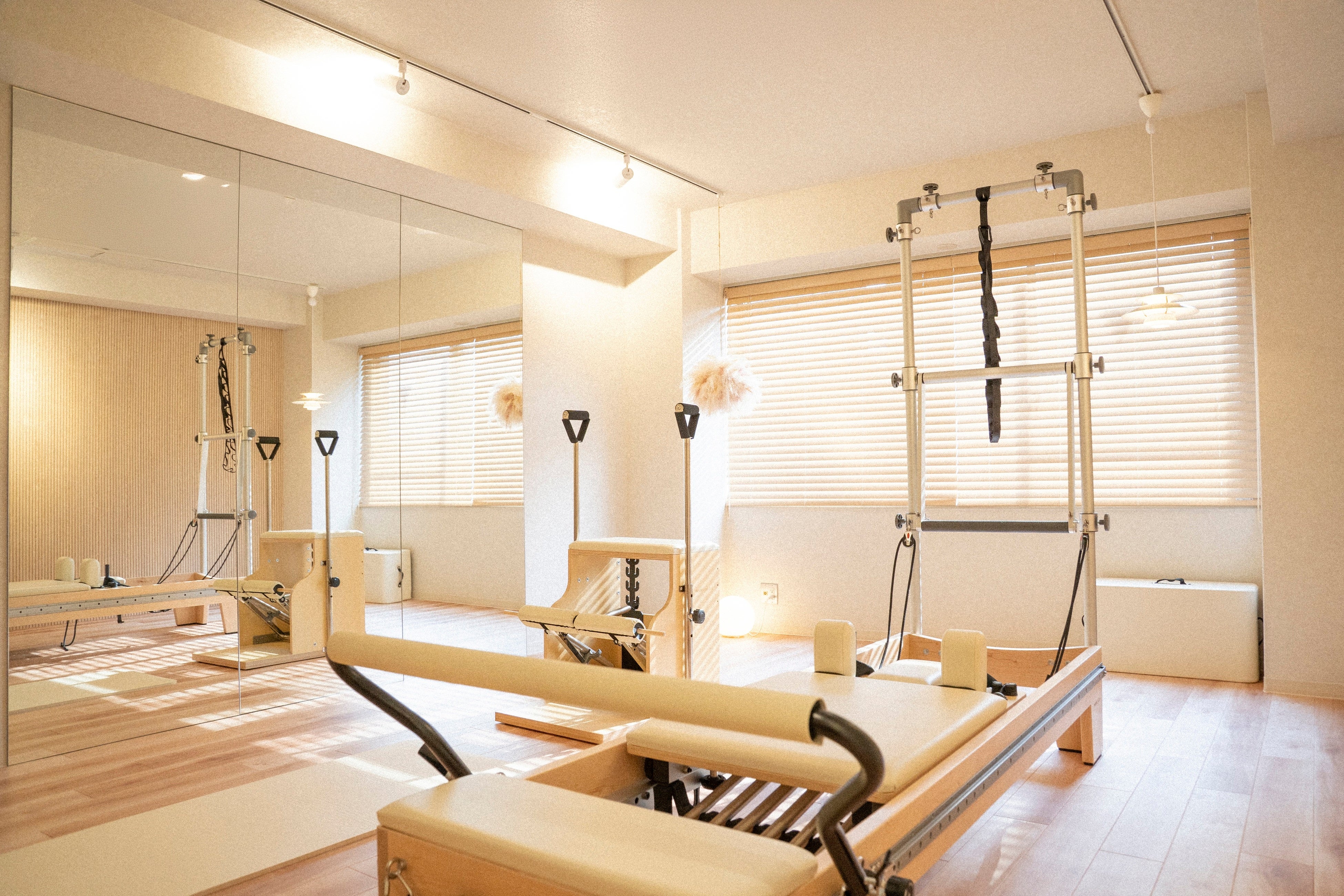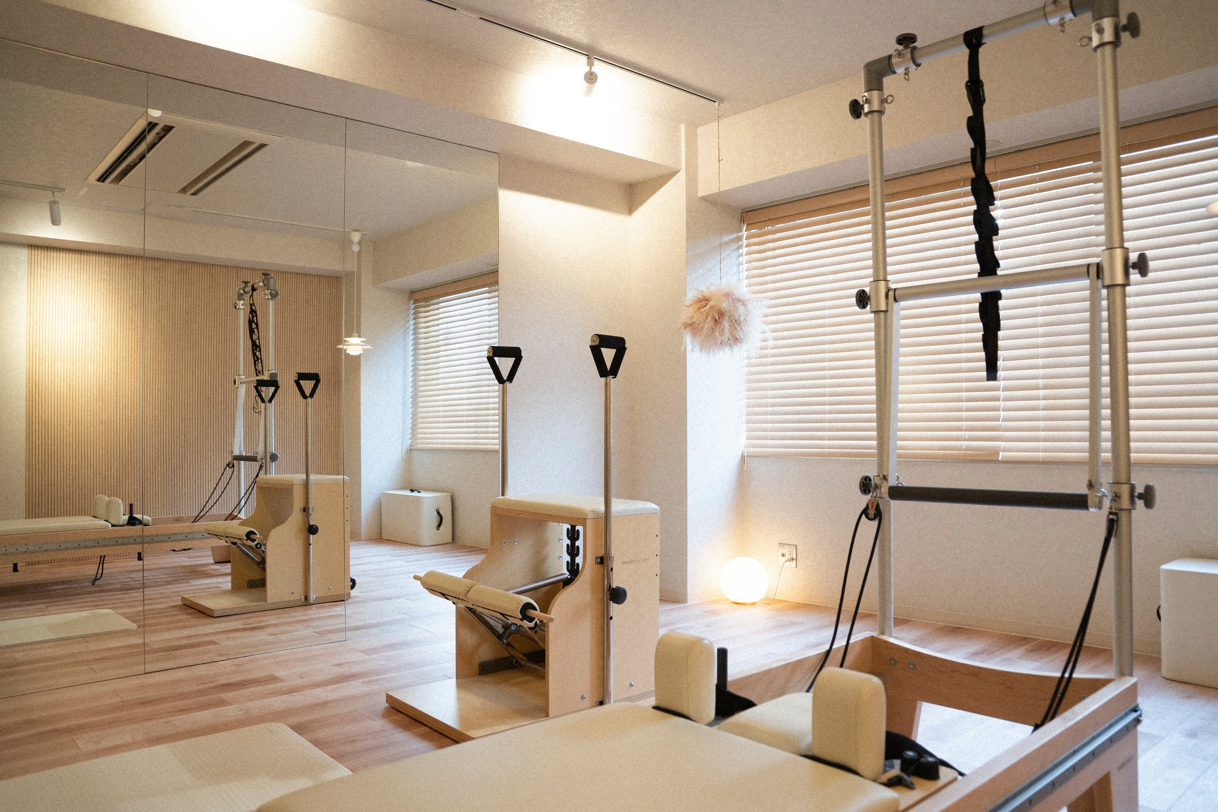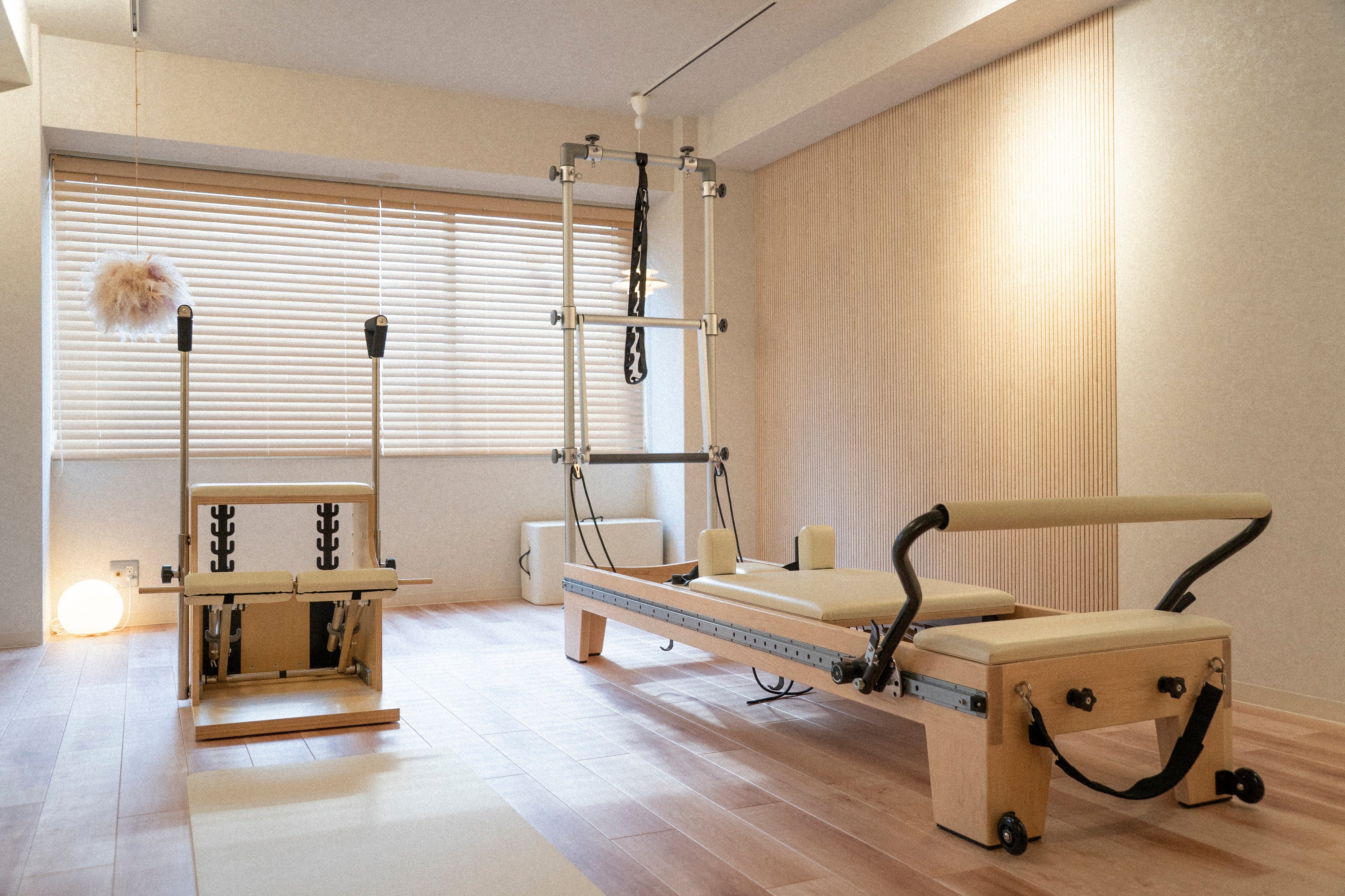 リフォーマー、タワー、チェア、スパインコレクターを揃えた充実の設備で、身体の奥から整える体験が可能です。