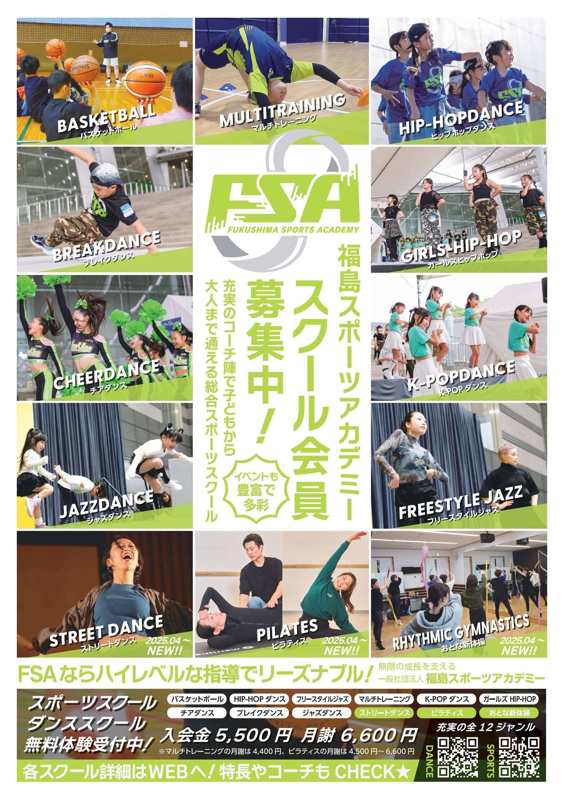 福島スポーツアカデミー【FSA】は福島県内に全12ジャンルのスポーツスクールとダンススクールを展開する、地域密着型の多世代総合型スポーツスクールです。