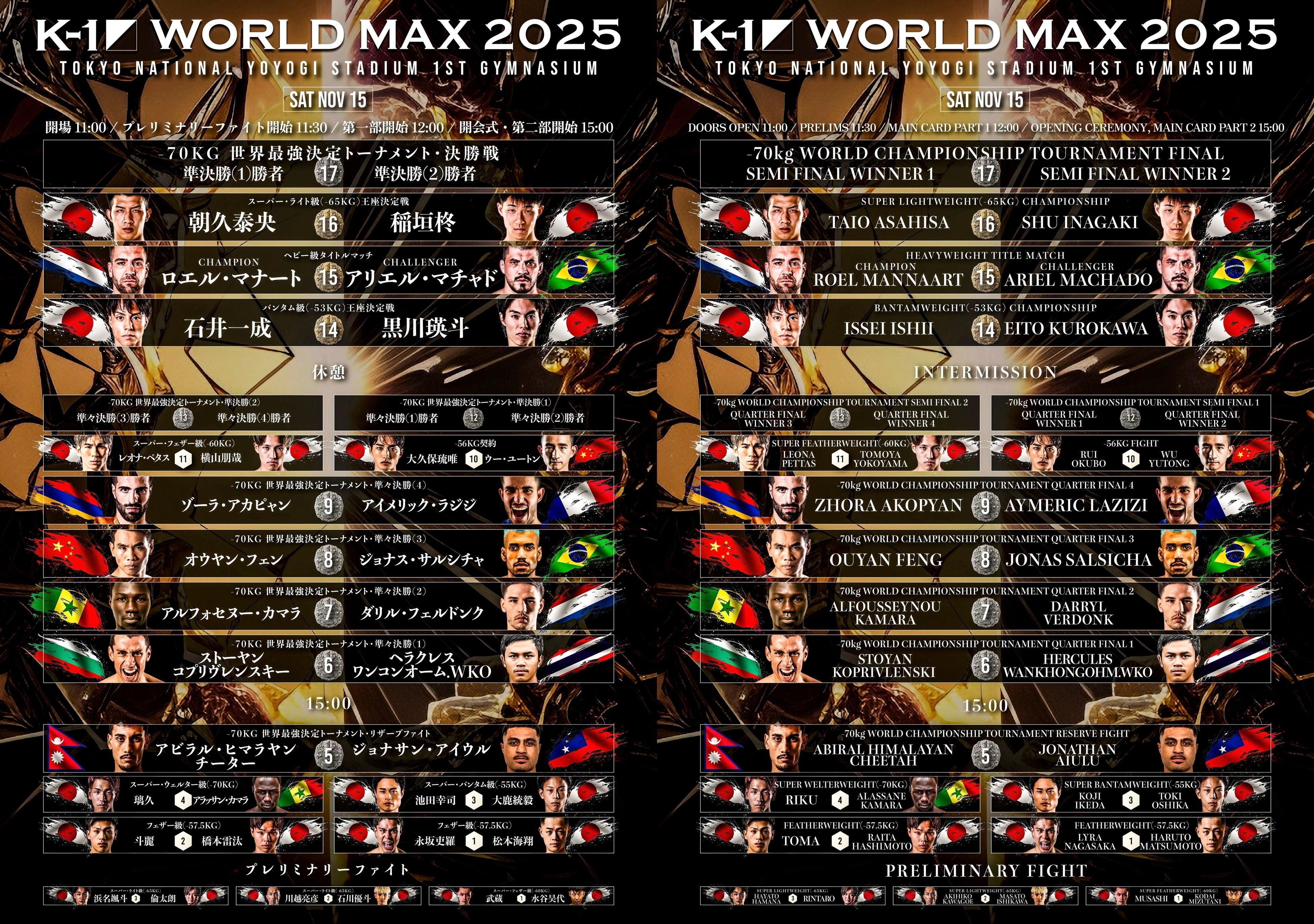 【大会情報】11月15日(土)「K-1 WORLD MAX 2025~-70kg世界最強決定トーナメント・決勝ラウンド~」代々木第一体育館