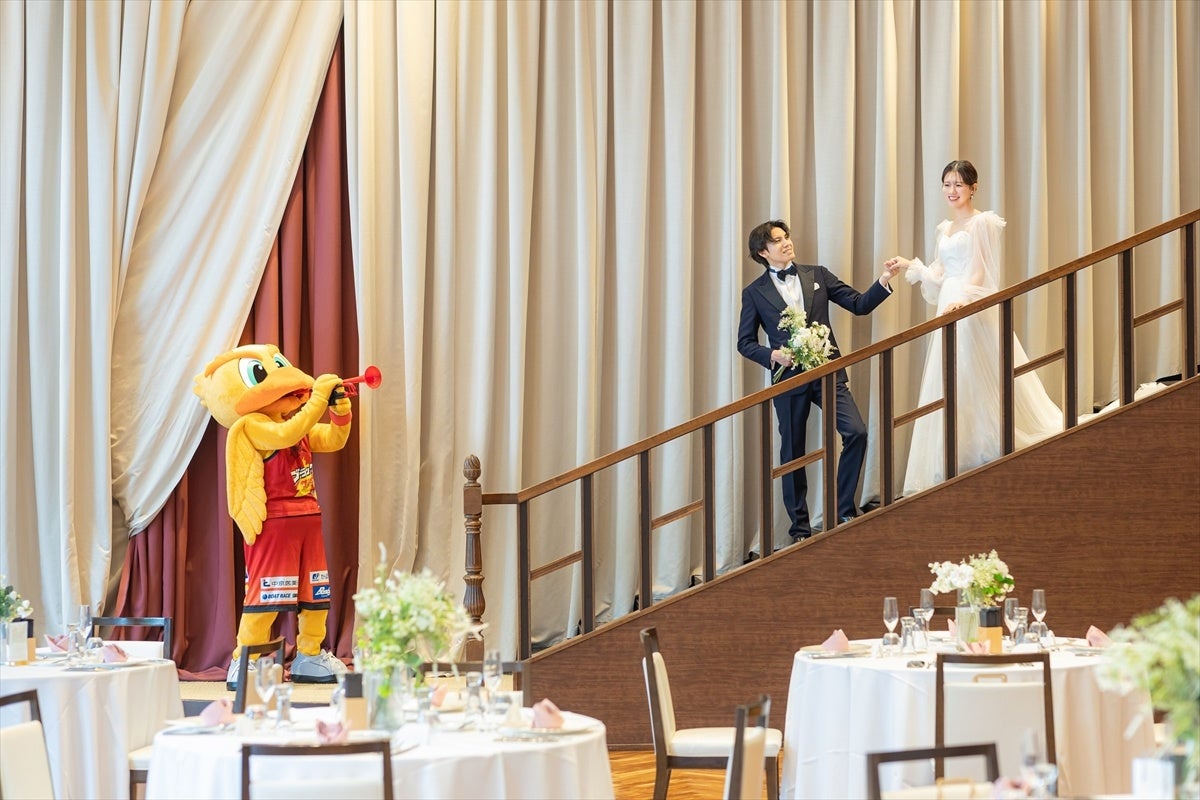 2025年10月に行われた本契約の更新にともない、「ルージュアルダン」「マンダリンアリュール」「アーブルオランジュ」にて結婚式を挙げるカップル限定で、三遠ネオフェニックスとのスペシャルコラボウエディングの特典をご用意しております。三遠ネオフェニックスのみなさまが、力強いプレーでたくさんの人に笑顔と勇気を与えているように。バスケットボールやスポーツを愛するカップルにも、笑いと涙あふれる最高のウエディングを届け、一緒に地域を盛り上げていきたいと思います。