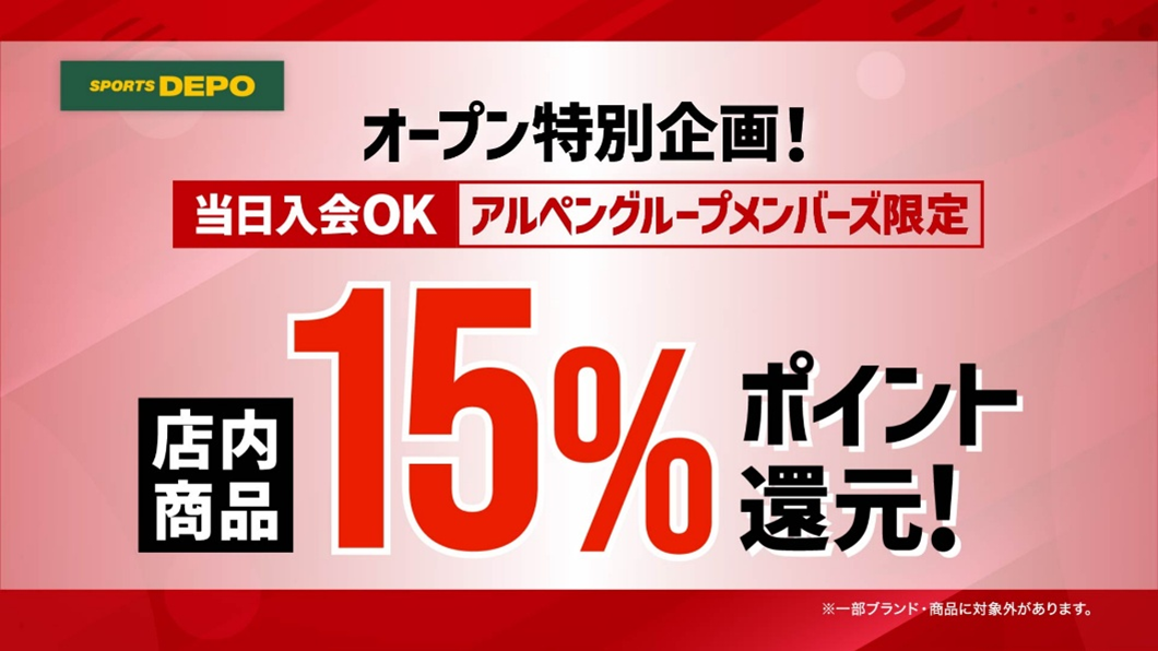 企画:店内商品お買上げでアルペンポイント15%還元