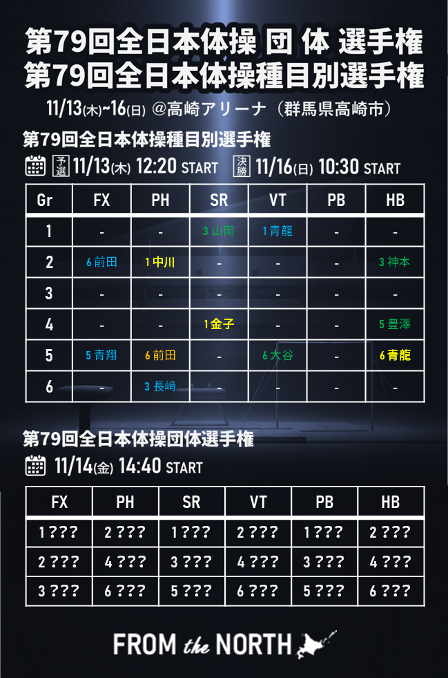 🏅 第79回全日本体操種目別選手権 出場予定選手(ジュンスポーツ北海道)
