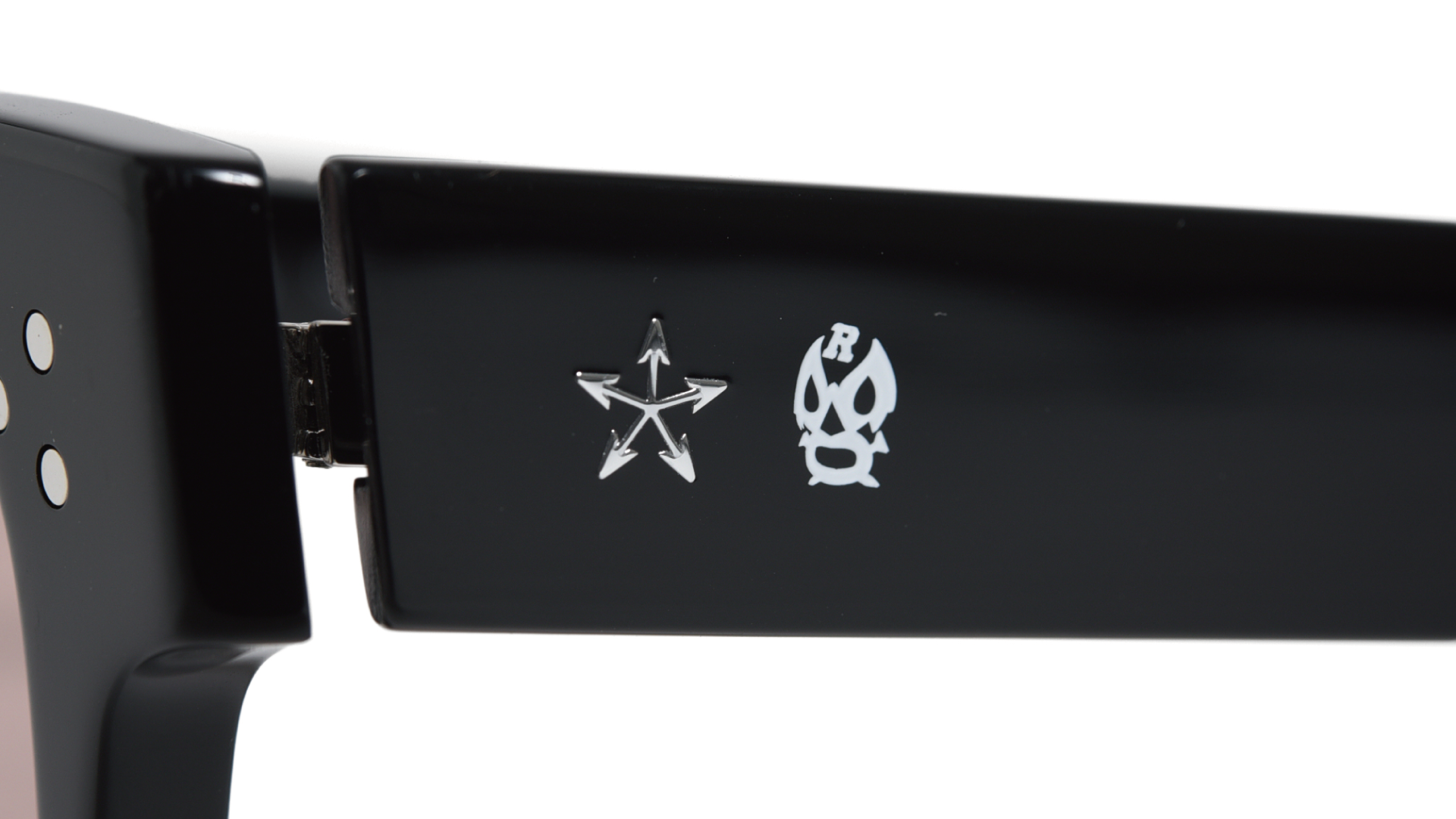 テンプル側面には、Russelunoブランドのシンボルマーク「LUCHA」とURMブランドを象徴する「URM star」が施されています