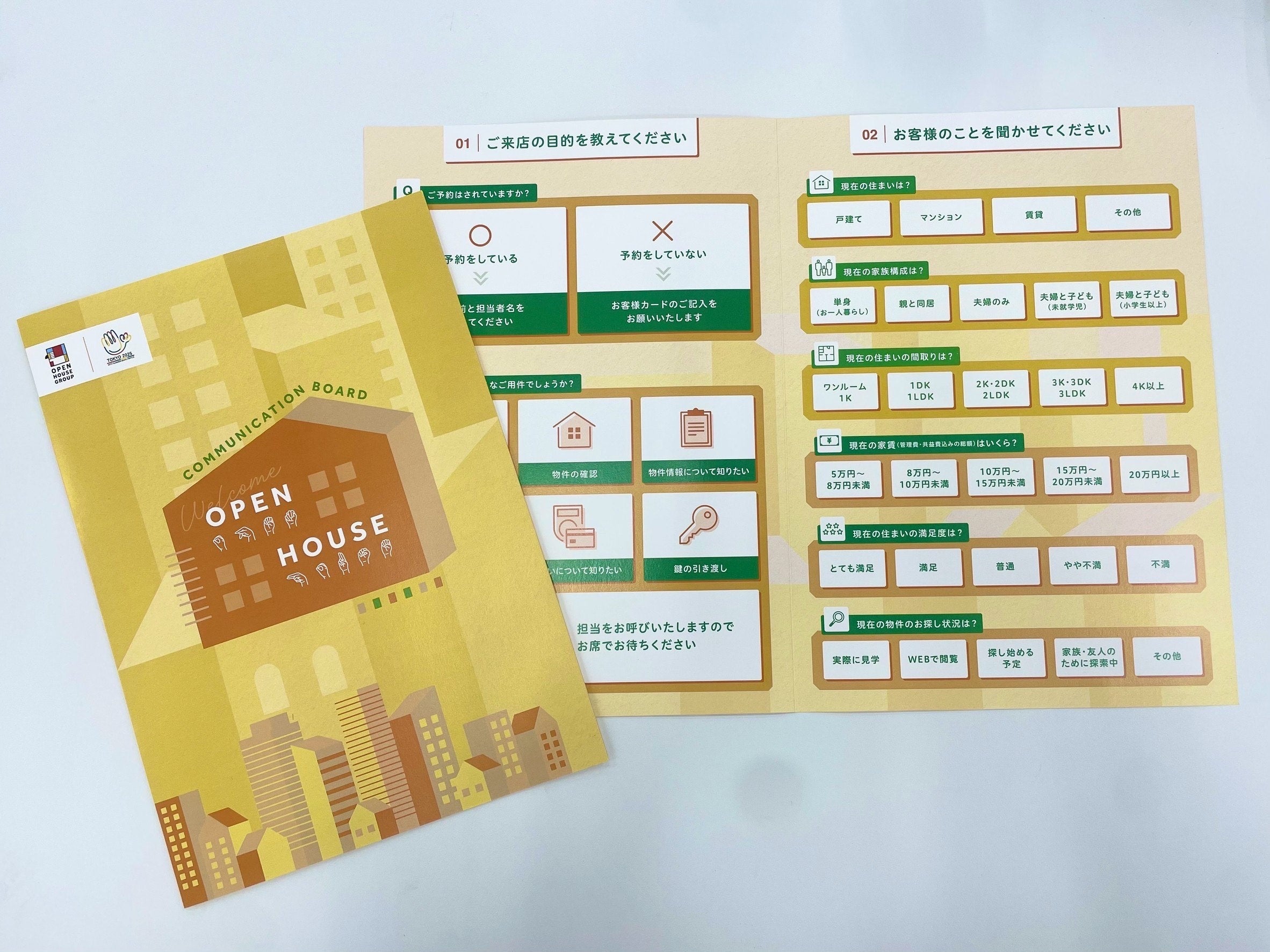 株式会社オープンハウスグループ(本社:東京都千代田区、代表取締役社長 福岡 良介、以下「当社」)は、この度「第25回夏季デフリンピック競技大会 東京2025」の開催を契機とし、すべてのお客様への接客品質向上を目指し、聴覚に障がいのあるお客様と営業担当者との円滑なコミュニケーションをサポートするリーフレット型ツール「COMMUNICATION BOARD(コミュニケーションボード)」を、全国の営業センター全77拠点に導入開始いたします。