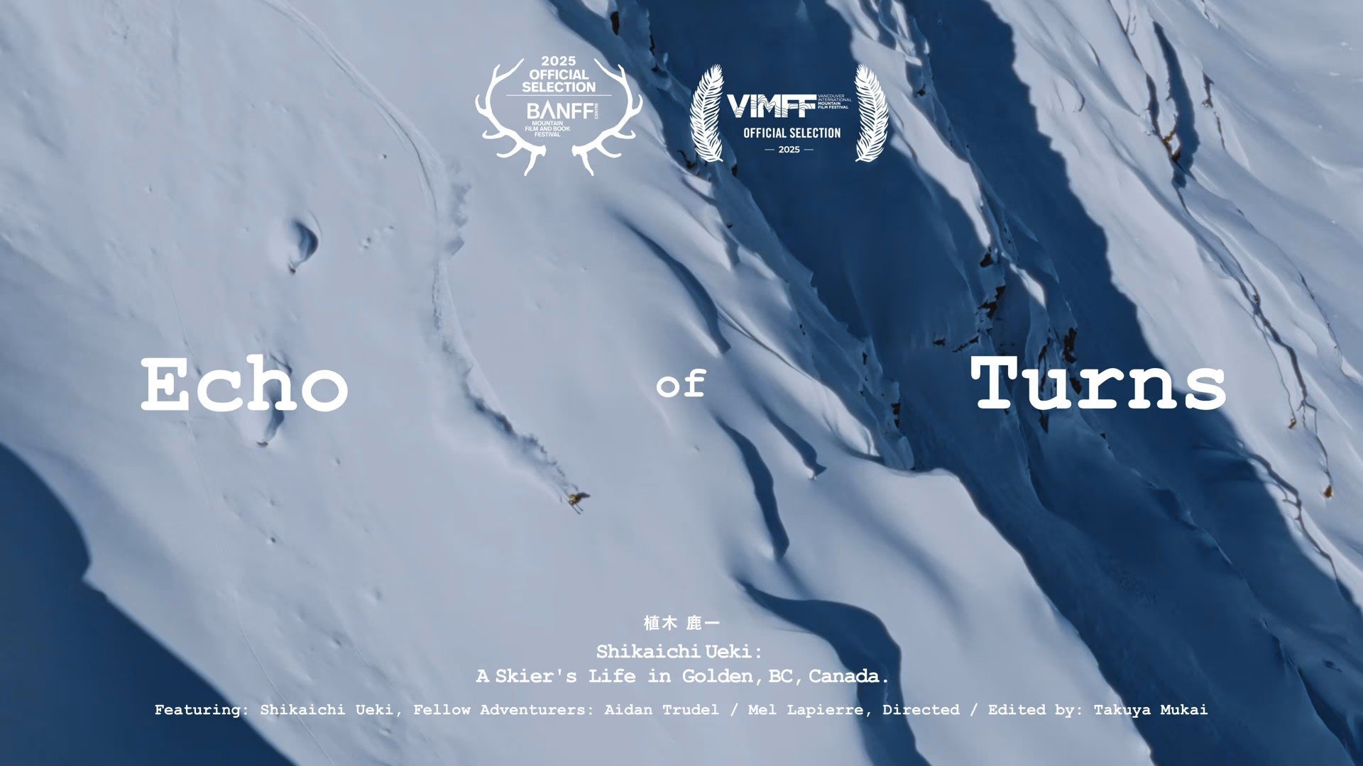 カナダ・ブリティッシュコロンビア州の小さな町、ゴールデンを拠点に、理想のラインを探し続けるフリーライドスキーヤー 植木 鹿一。日本でフリーライドの魅力を広めることを目的とした大会「Japan Freeride Open」も主宰する。雪と地形を読むセンスに加え、町の人々と育む“生活としての滑り”が魅力。そんな彼の日常を紡いだ『ECHO OF TURNS』は、移住者がコミュニティに受け入れられ、受け取った温かさを滑りで返す。ターンの余韻が、人から人へと伝わる“エコー”となって広がっていく。この町に流れるポジティブなエネルギーを、全力の滑りと共に表現するストーリー。