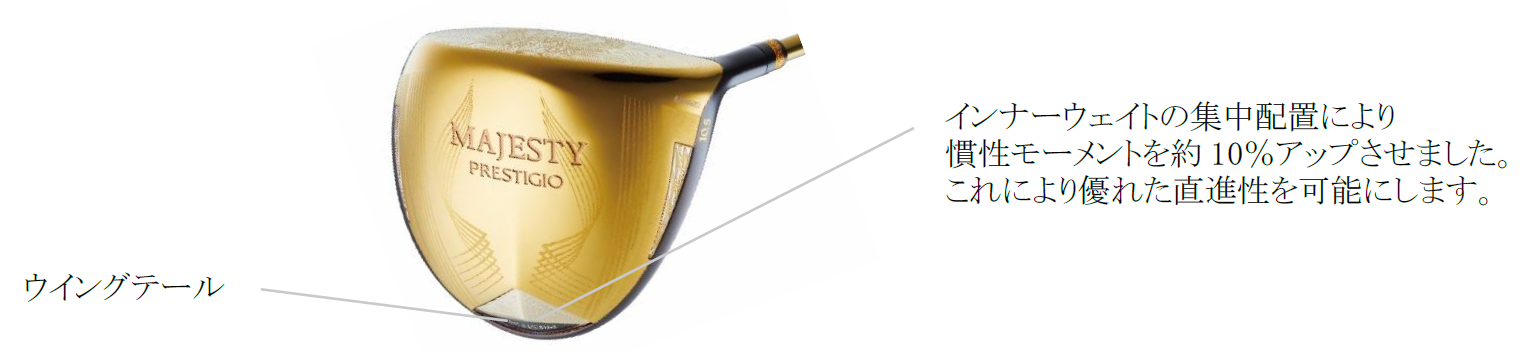 鳥が滑空する際に姿勢を安定させる尾から着想を得た「ウイングテール」デザインを採用しています。ヘッド内部に余剰重量を集約することで慣性モーメントを更に高め、優れた直進性と共に安定した