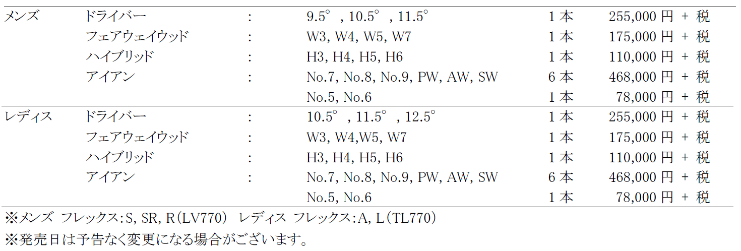 価格: アイアンセット(6本 7~9,PW,AW,SW) 514,800円(本体 468,000円)