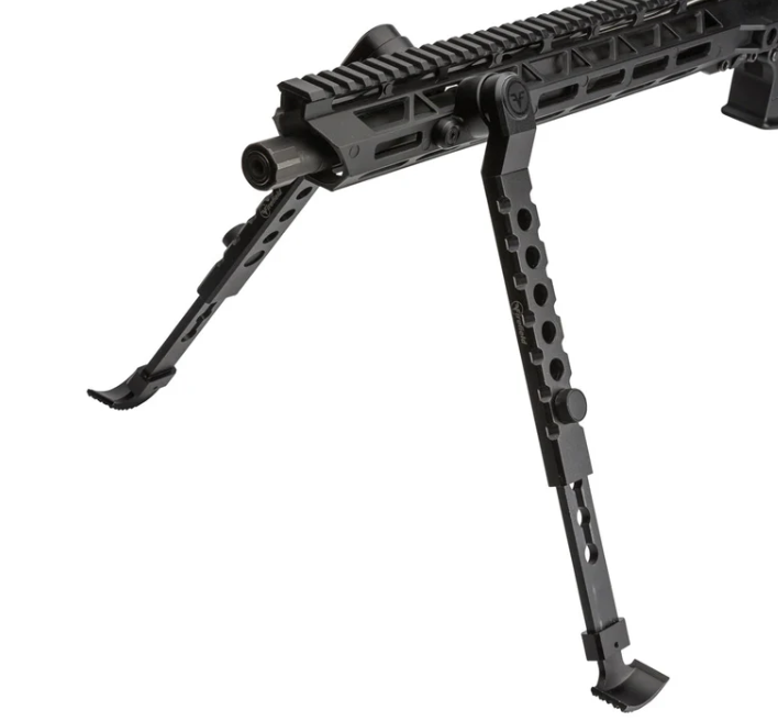 分割設計によってレール下部の拡張性を確保しながら、9~12インチの可変脚とグリップフットが高い安定性と操作性を両立。地面の起伏を問わず、スムーズな照準をサポート。