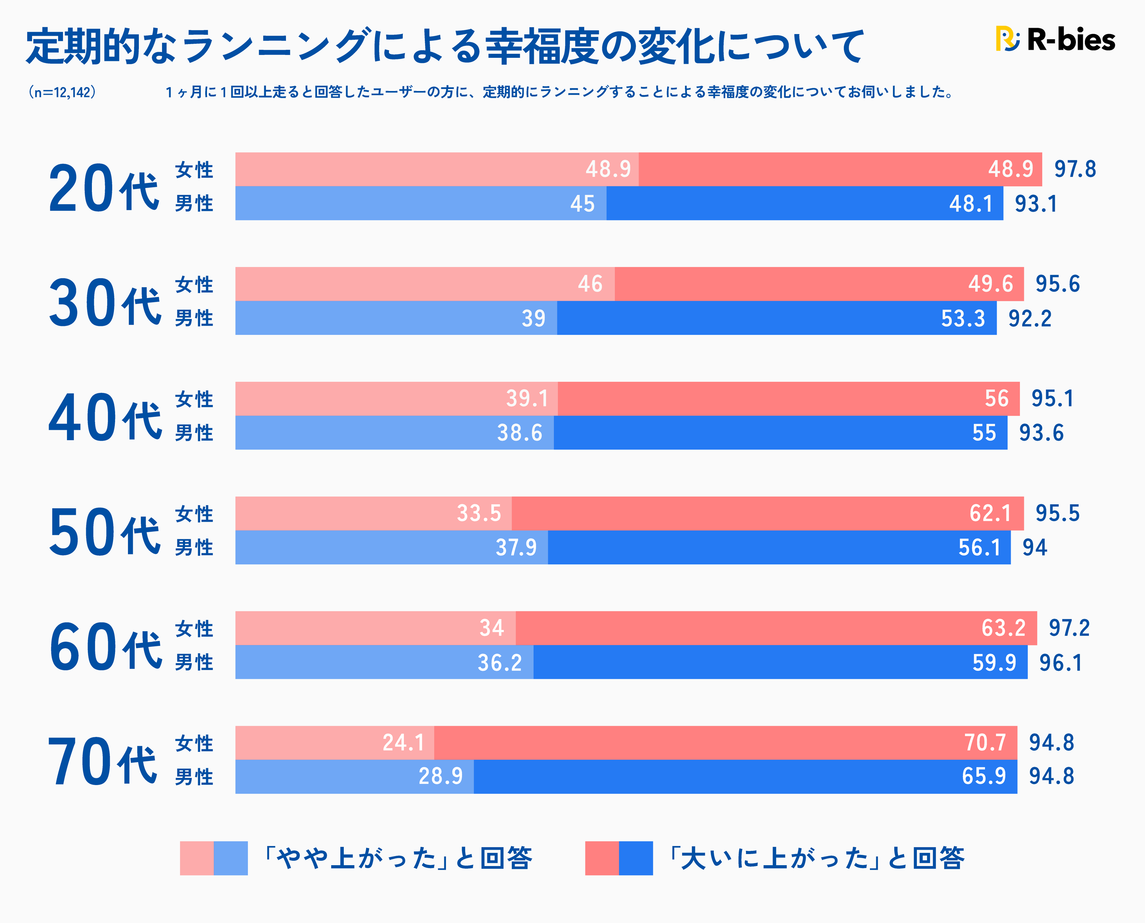 1.ランナーの94.6%がランニングで「幸福度アップ」を実感