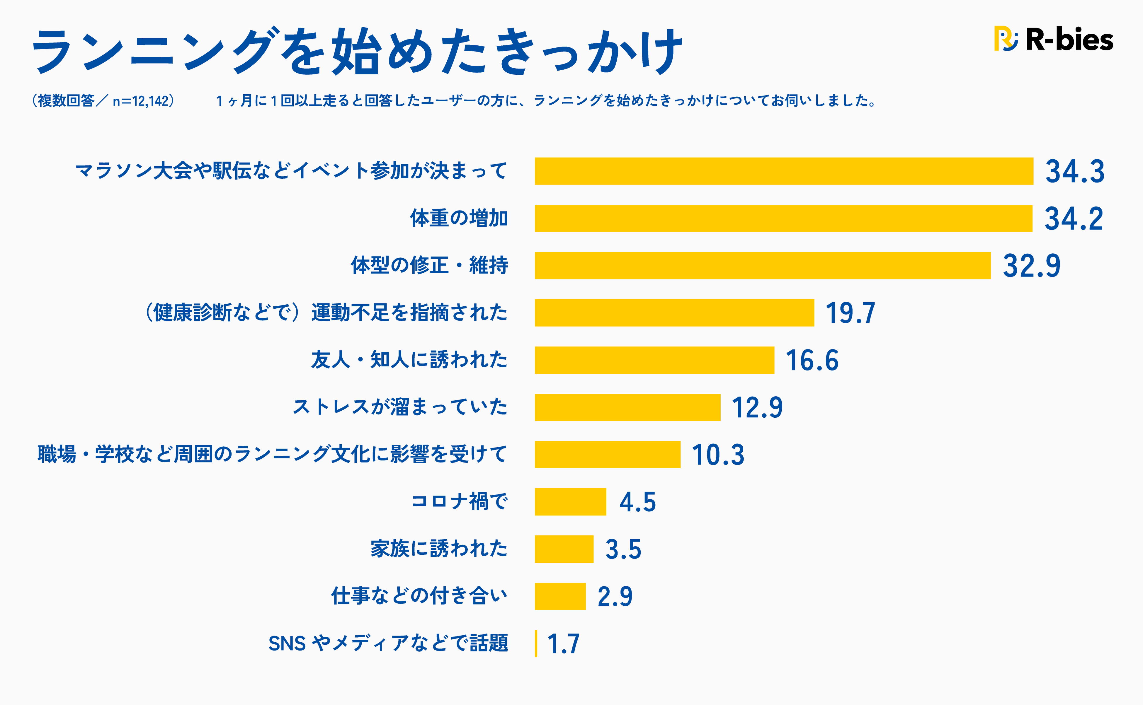 1. 調査でわかった「ランナー像」 ー 走るきっかけ1位「大会参加」、2位「体重減」