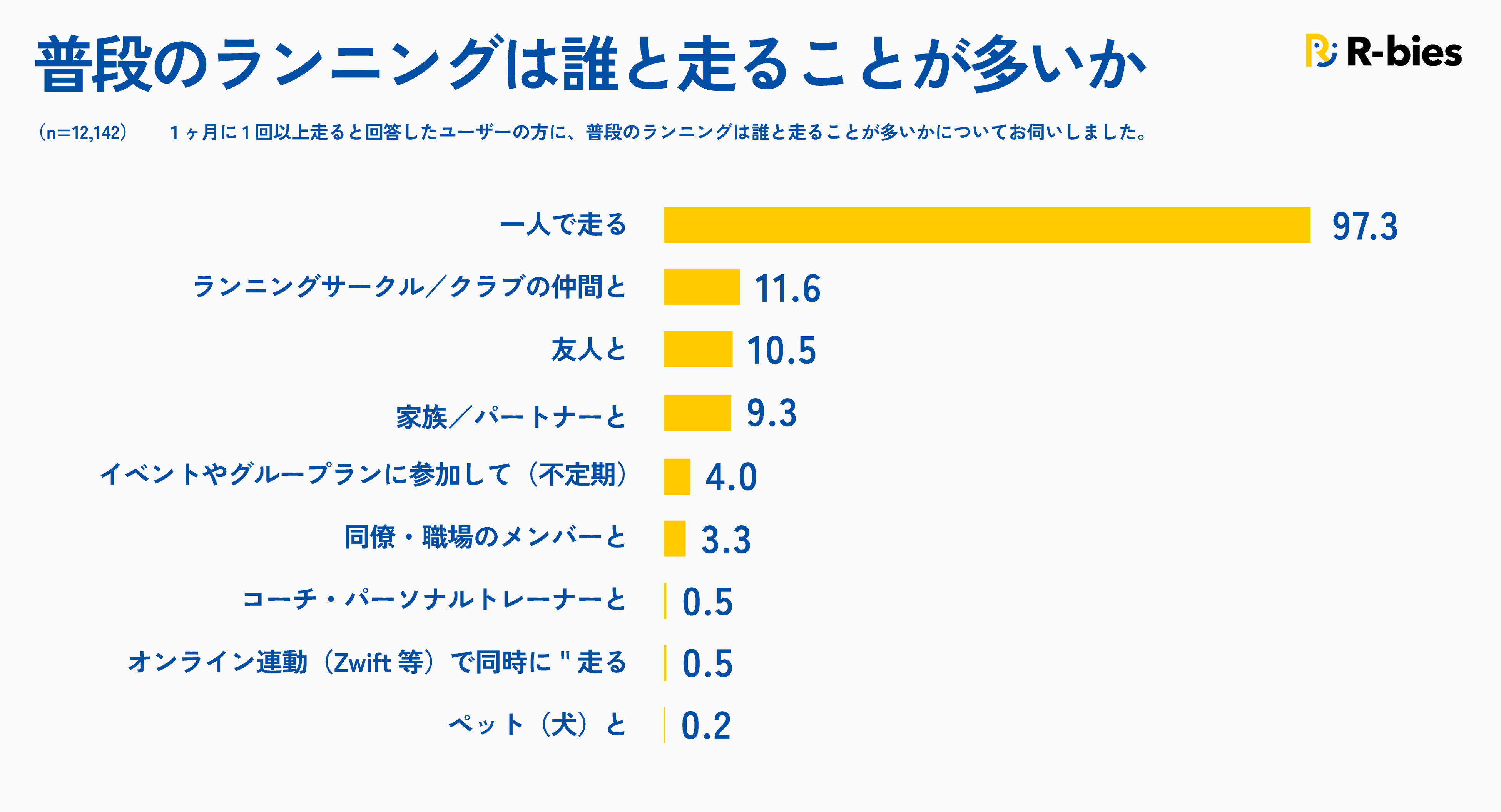 また、普段は約9割のランナーが一人で走っている一方で、約4割のランナーが幸福度が上がった理由に「人との繋がり」を挙げていることから、ランニングという行為を通じて、精神的な充足感(メンタル)と社会的な繋がり(コミュニティ)の両方を手に入れ、幸福度を高めている姿がうかがえます。
