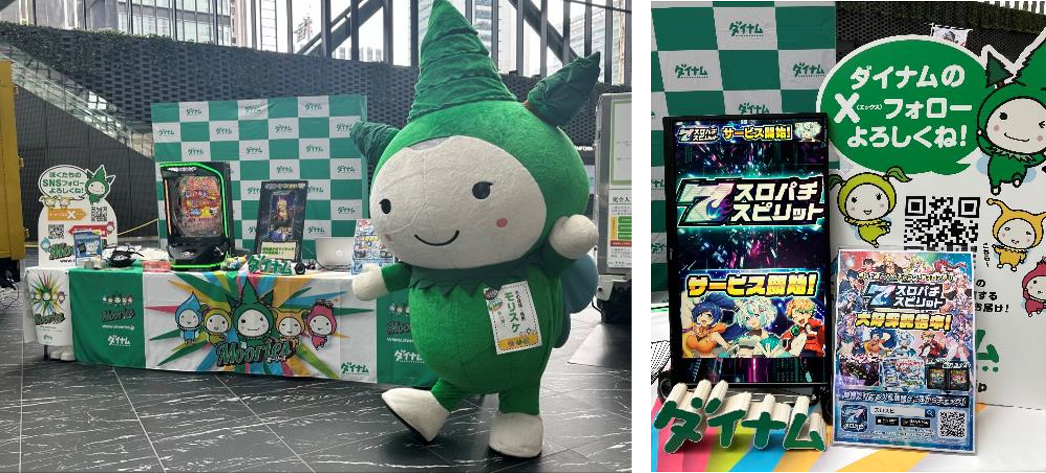 大会期間中は、ダイナムグループ公式キャラクター「モーリーズ」のイベントブースを展開予定です。モーリーズブースでは、ダイナムとコムシード社が業務連携のもと、リリースした新作バーチャルホールアプリ「スロパチスピリット」をダウンロードすることで参加できる無料のゲームアトラクションを実施予定です。会場へお越しの際には、ぜひ当社のイベントブースにもお立ち寄りください。