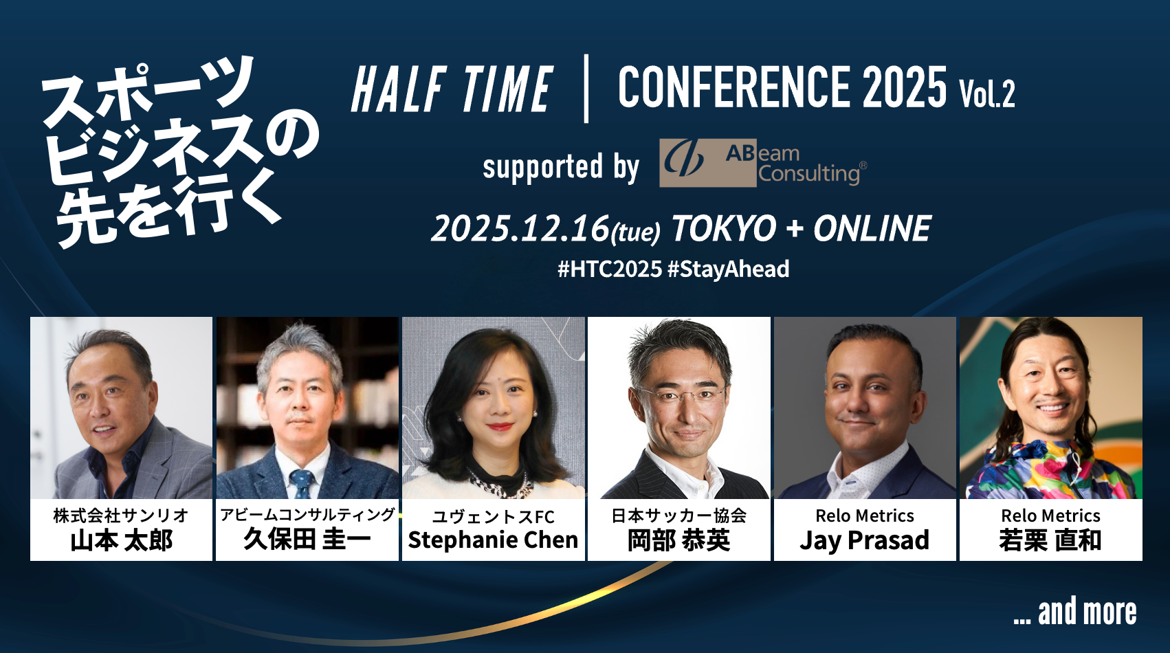 スポーツビジネス領域で採用及びPR事業を展開するHALF TIME株式会社(東京都江東区、代表取締役:磯田裕介)では、今年第二弾となる当社主催のスポーツビジネスカンファレンス「HALF TIMEカンファレンス2025 Vol.2 supported byアビームコンサルティング」を、12月16日(火)に、東京会場とオンラインのハイブリッド形式で開催します。