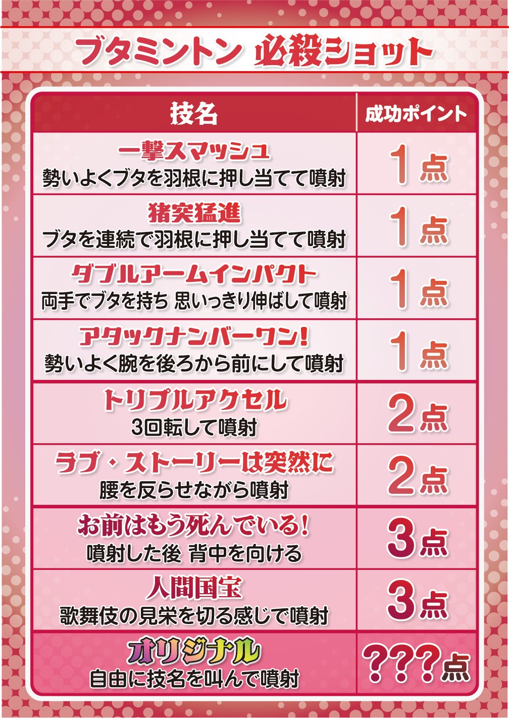 ブタミントンプレイ中の必殺ショットの動画を募集!