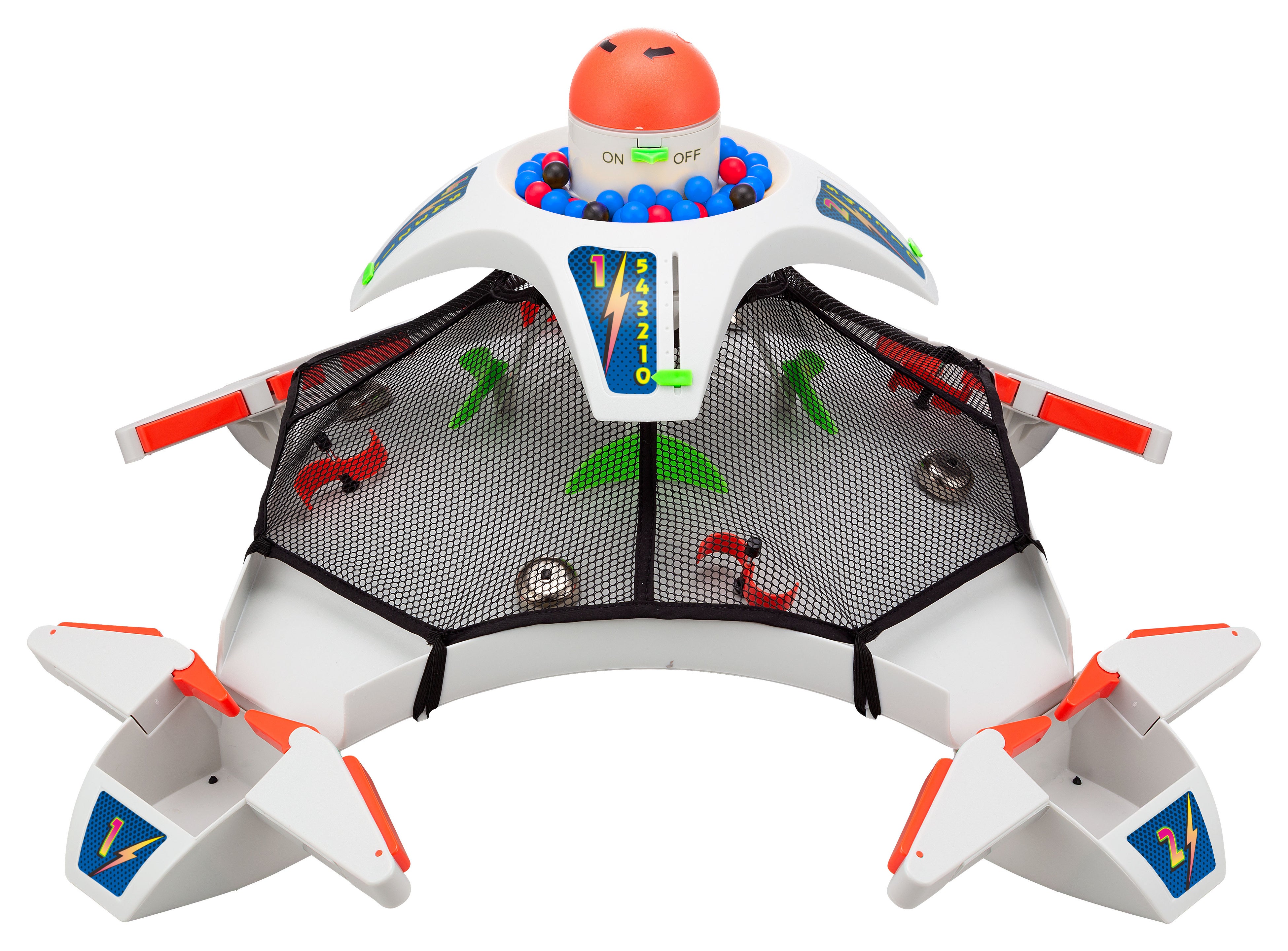 本体中央上部からランダムに落ちてくるボールをフリッパーではじいて相手のゴールにシュートしていきます。弾いたボールがベルに当たると「チンッ!チンッ!」と鳴り、よりエキサイティングなゲーム展開が楽しめます。ボールが落ちきった時点で、プレイヤー全員で自分のゴールに入ったボールをカウントし一番点数の高い人が勝ちとなります。2人~4人で対戦可能です。