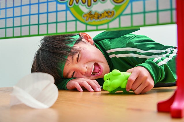 ルールはシンプルながらも、ブタの顔立ちがユニークなラケットは、空気を吹き出そうと押す度に可愛く「ブー」と鳴き、対戦で白熱しながらも笑いがおこり、お子様から大人まで世代を問わず盛り上がる玩具です。