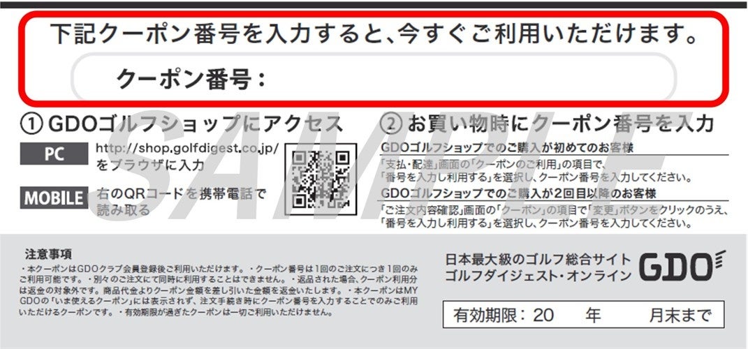 「GDOゴルフショップ」のサイトやアプリを通じて、中古ゴルフクラブを購入する際にクーポンとして利用できるお礼品です。寄付後に郵送で届くクーポンの裏面に記載されたクーポン番号を購入時に入力すると、中古ゴルフクラブを割引価格で購入することができます。