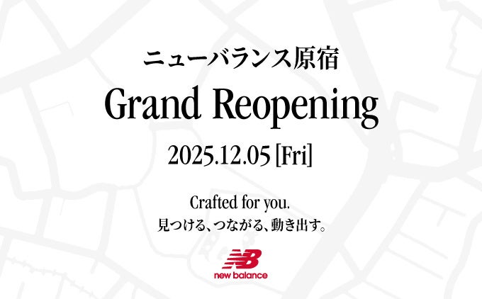 株式会社ニューバランスジャパン(本社所在地:東京都千代田区、代表取締役社長 久保田伸一)は、2016年11月5日に日本初となるフラッグシップストアとしてオープンした「ニューバランス原宿」を、10年目を迎える今、大規模な改装を実施し、2025年12月5日(金)11時にグランドリニューアルオープンいたします。ニューバランスのフラッグシップストアは、現在アメリカ・ボストン、イギリス・ロンドン、そして日本の原宿の世界で3店舗のみとなり、ニューバランスのクラフトマンシップやイノベーション、世界感をお客様に感じていただくことができる特別な店舗です。