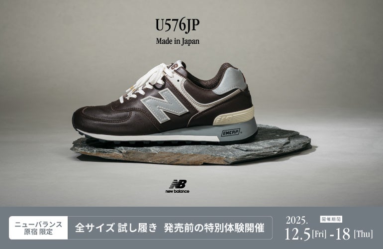 1988年にオフロードモデルとして登場しその後ライフスタイルの定番モデルとなった「576」を、ニューバランスとグローバルパートナーシップを結ぶM.Lab(ミムラボ)の工房にて職人の手作業により仕上げたMade in Japan「U576JP」の発売が12月19日(金)に決定いたしました。ニューバランス公式オンラインストアでの数量限定販売となりますが、ご購入前にサイズやフィット感をお試しいただけるよう、全サイズの試し履きシューズをご用意いたします。ぜひMade in Japanのニューバランスの履き心地をご体験ください。