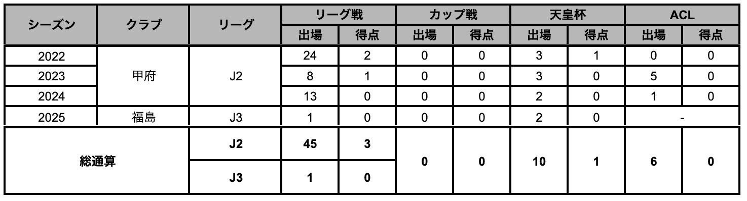 【サッカー歴】児⽟ディパーチャFC→江南南サッカー少年団→クマガヤSC→前橋育英⾼→法政⼤→ヴァンフォーレ甲府