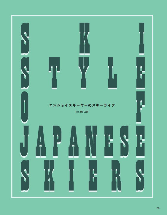 スキーの面白さってなんだろう。 この問いを自分に何度も投げかけたけれど、一言でなんて簡単に表現できないし、 真っ当な答えが見つからない。だけどこれだけは言える。 スキーをしなかったら、きっと色のない冬を過ごすことになる。 SKI CLUB Vol.5 では、スキーの不思議な世界に魅了されたスキーヤーたちを紹介。 その世界は、簡単には抜け出せなくなる楽しい迷宮だ。 さあ、滑り込もう。Wondering Ski へ!