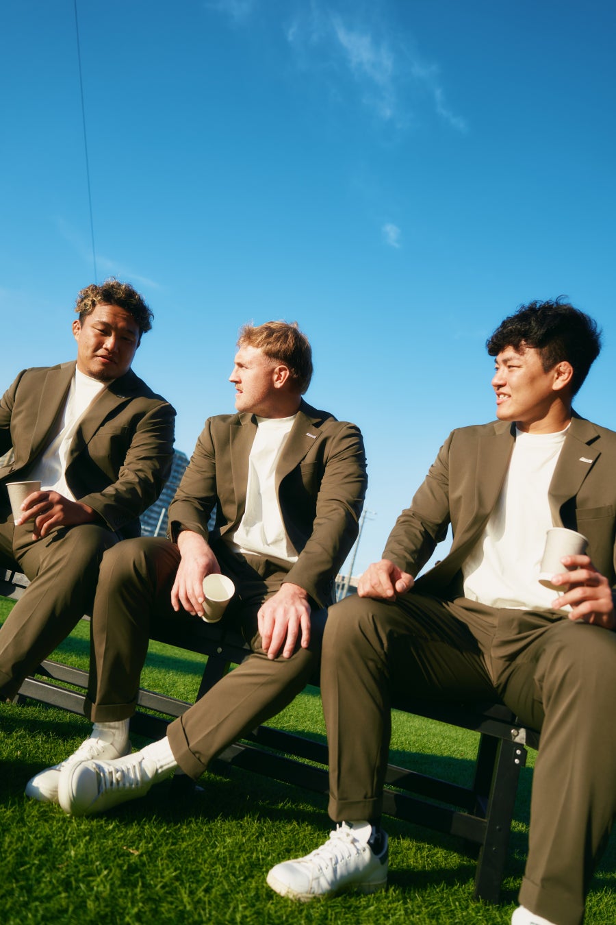 新スーツのカラーは、落ち着きと力強さを兼ね備えた濃いオリーブカラーを採用し、サステナブルな理念を象徴するデザインに仕上げています。