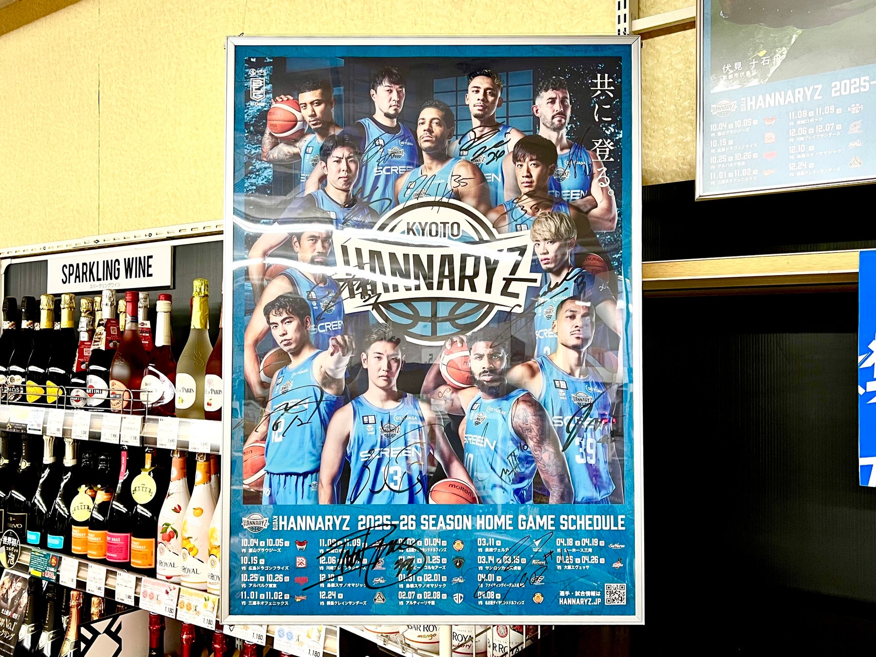 京都ハンナリーズのホームアリーナ「京都市体育館」から徒歩13分、阪急西京極駅からも徒歩3分という好アクセスの同店では、チームを盛り上げる多彩な取り組みを実施しています。店内には等身大のはんニャリンパネルや、全選手のサイン入りポスターも展示しており、ブースターの皆さまにお楽しみいただける空間となっています。