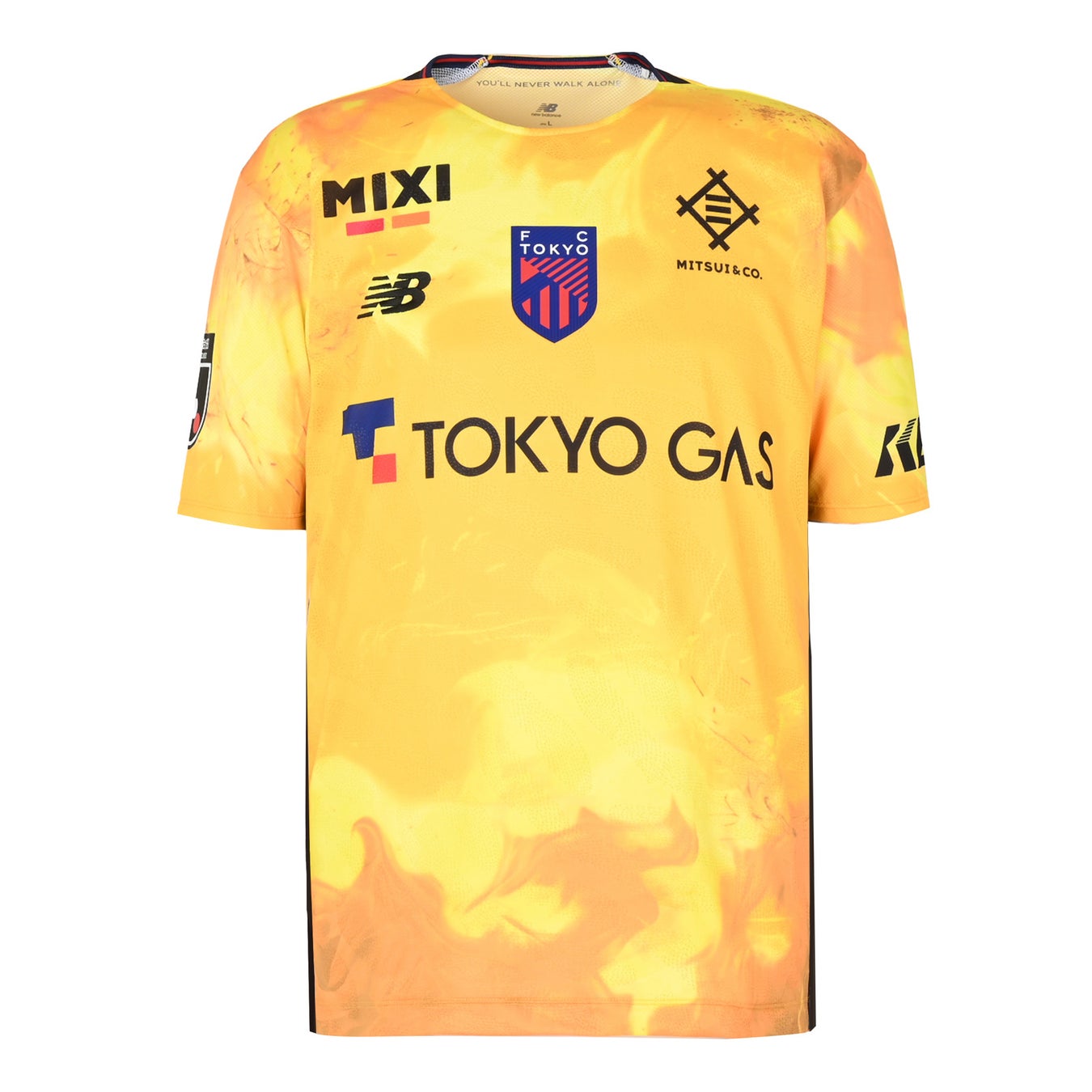 1st KITにはクラブスローガンである『東京が熱狂』を表した、躍動する“炎”をモチーフとしたデザイン。青い炎は冷静さ、安定感、赤い炎は、情熱を表現し、ストライプデザインの枠を超えて、両方の炎が合わさる事で、強さ・勢いを象徴しています。