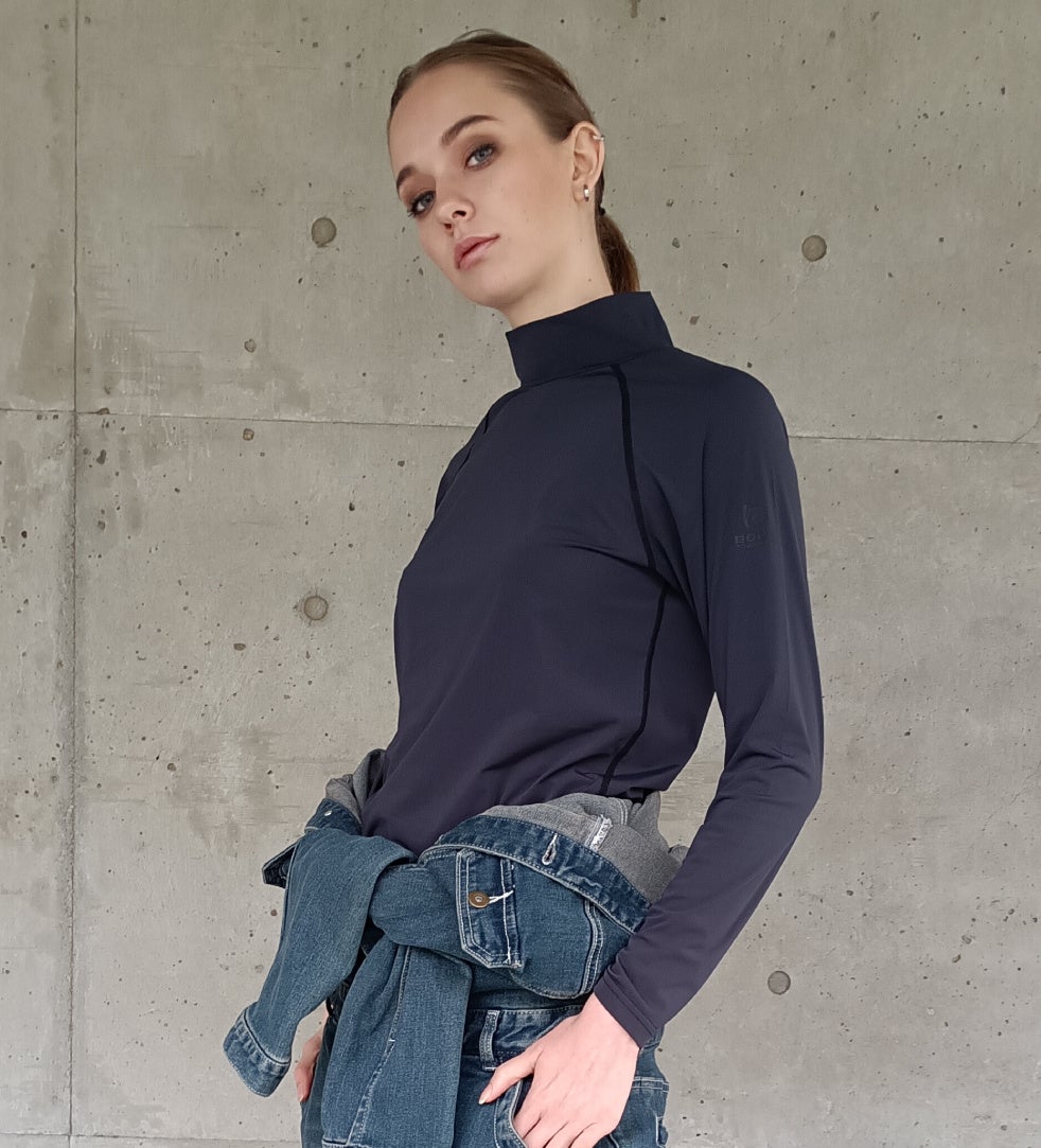 女性ユーザーから寄せられた 「EVOシリーズにレディースが欲しい︕」 の声を受け、首元の日焼けが気にならないハイネックタイプを採用。現場仕事にもスポーツにも活躍する、高機能で着心地のいい夏インナーです。