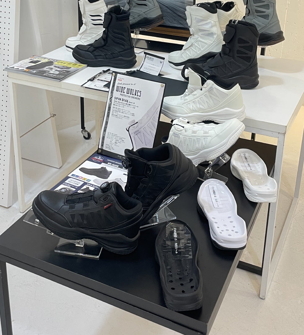 ワークユースはもちろん、 自転車・ランニング・釣り・ゴルフなどスポーツでも使える、コスパの良さに、思わず足を止めてくださる方も多く、スタッフとの会話があちこちで盛り上がる、温かな雰囲気の展示会となりました。