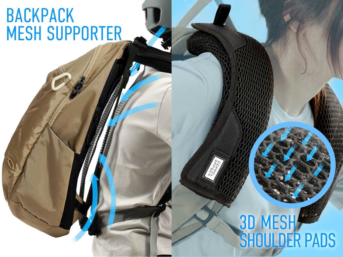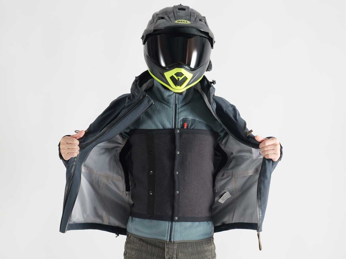 オートバイ走行時はもちろん、肩が自由に動くため釣り・ゴルフなど