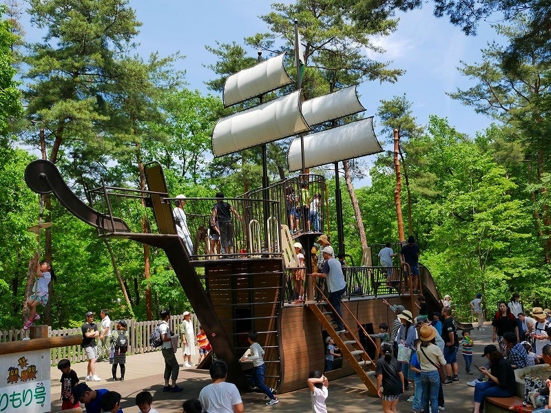 東京ドーム65個分もの広さを誇る園内には、日本最大級のエアートランポリン「ぽんぽこマウンテン」やアスレチックコースなど、家族で体を思いっきり動かして遊べる遊具がたくさんあります。また、都市緑化植物園では、四季折々の風景や木々、草花もお楽しみいただけます。