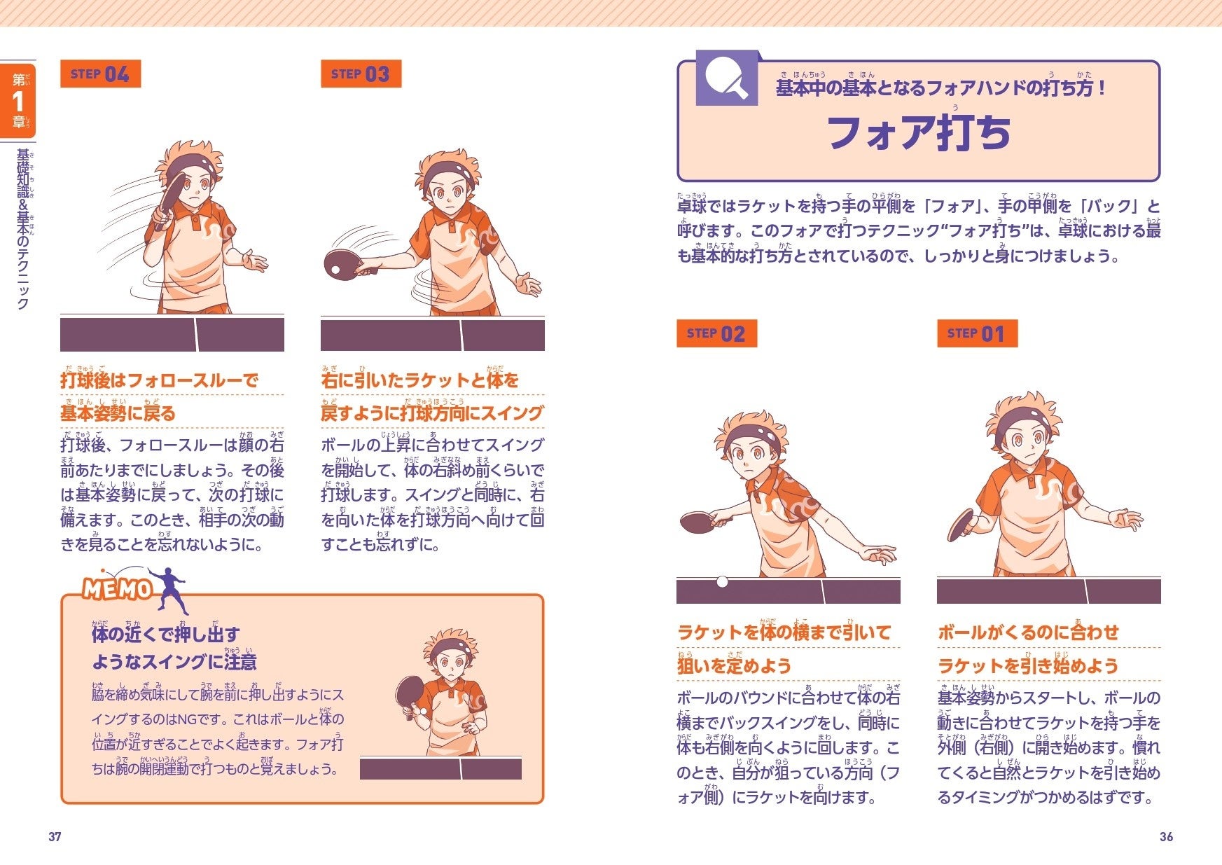フォア打ち/バック打ち/回転のかけ方など、動作のポイントをイラストでわかりやすく解説。正しいフォームを可視化することで基礎をしっかり学び、間違ったクセがつくことを防ぎます。