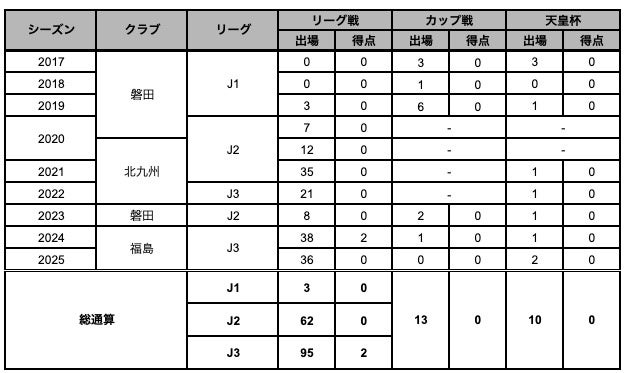 【サッカー歴】FC 古河 Jr ユース→昌平⾼→ジュビロ磐⽥→ギラヴァンツ北九州→ジュビロ磐⽥→福島ユナイテッド FC