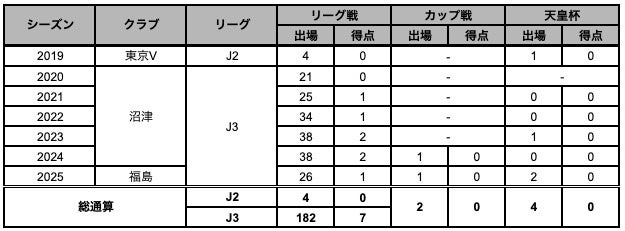 【サッカー歴】⽻⾐ SC→東京ヴェルディジュニア→東京ヴェルディ Jr ユース→東京ヴェルディユース→中央⼤→東京ヴェルディ→アスルクラロ沼津→福島ユナイテッド FC