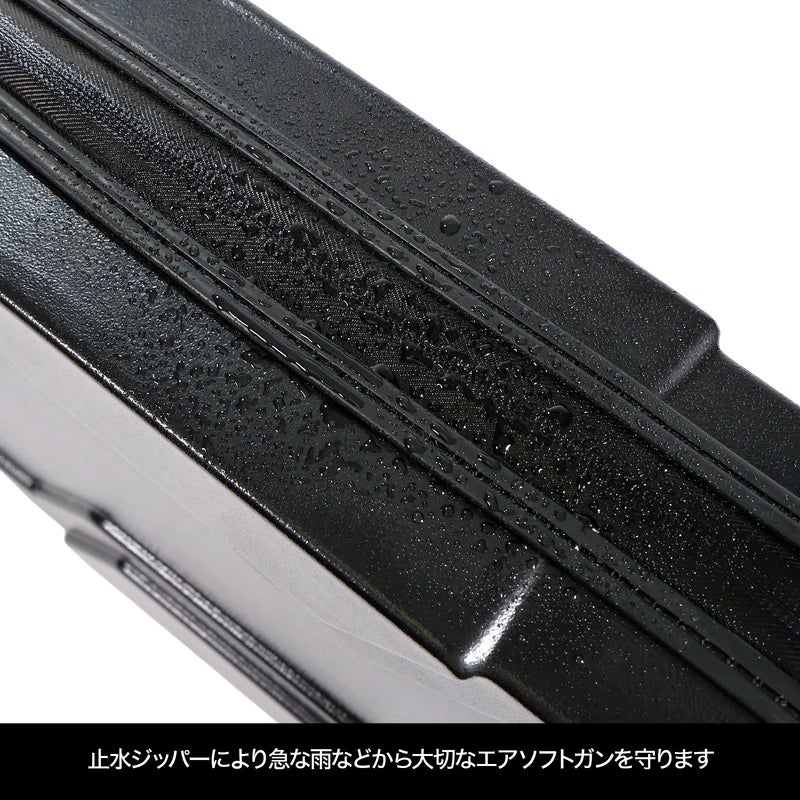 止水ジッパーは、サバゲーで避けられない突然の雨や地面の水はねからエアソフトガンを守るための重要な装備です。ジッパーの隙間から水が侵入しにくい構造になっているため、移動中に雨脚が強まったり、フィールド内で濡れた地面にケースを置いたりする場面でも安心して使用できます。特に、電動ガンや光学サイトなど水濡れに弱い装備を持ち運ぶユーザーにとって、止水ジッパーの採用は“大事な機材を守る最後の防壁”となります。