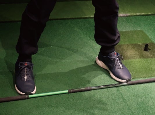 グリップ位置でつま先の位置やスタンスの広さを確認し、 中グリップの位置でボールポジションをチェックできます。