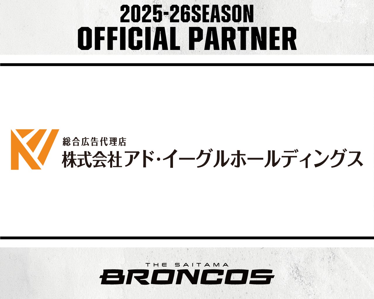 この度、さいたまブロンコスは、株式会社アド・イーグルホールディングスと2025-26シーズンより、オフィシャルパートナー契約を締結いたしましたのでお知らせいたします。