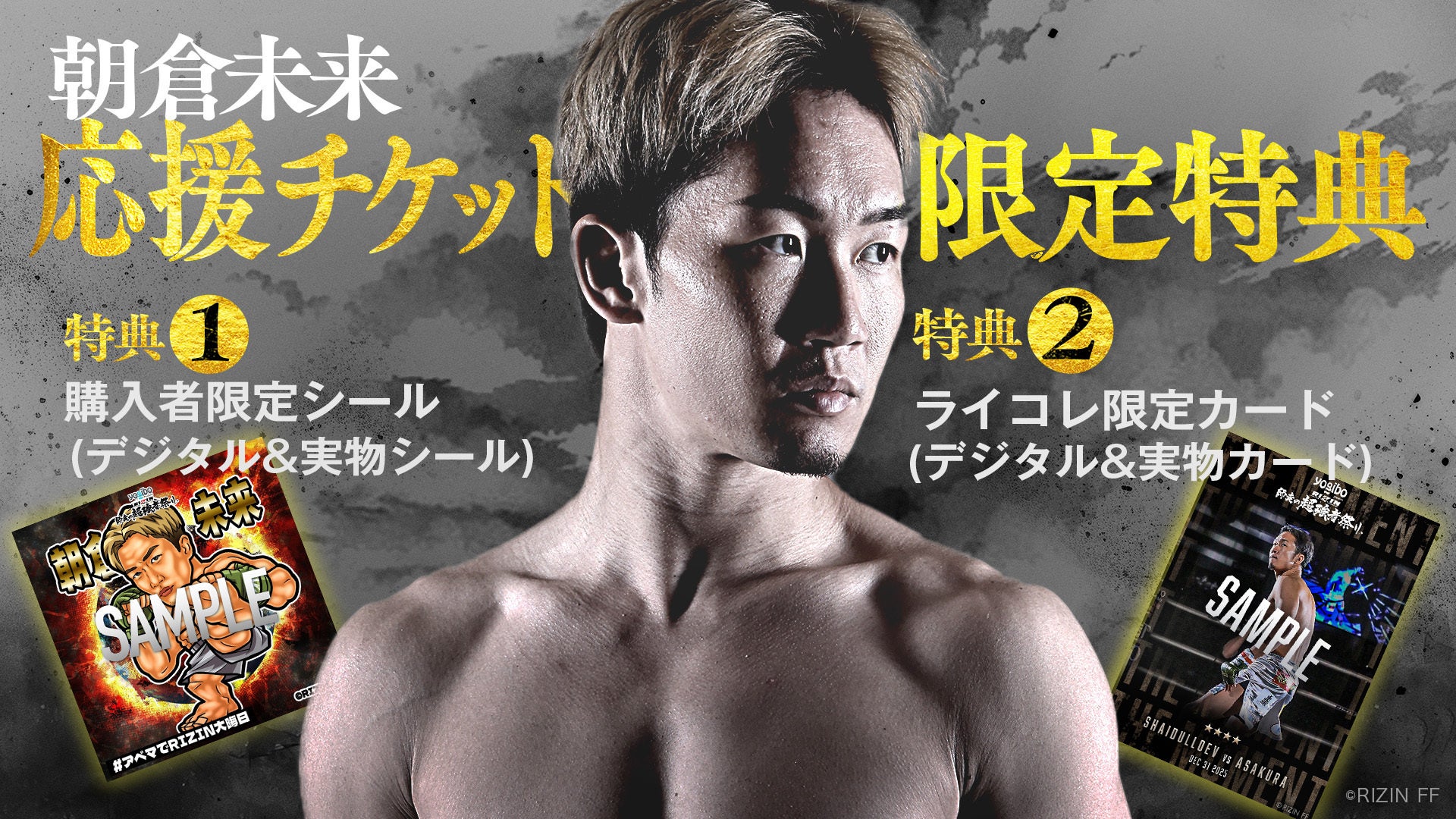 (※)「RIZINカードコレクション 特別限定カード」はデジタル特典となります。受け取りには、RIZINカードコレクションへの会員登録が別途必要です。シリアルコードは2026年1月中に「ABEMA」内のギフトボックスにてお送りします。