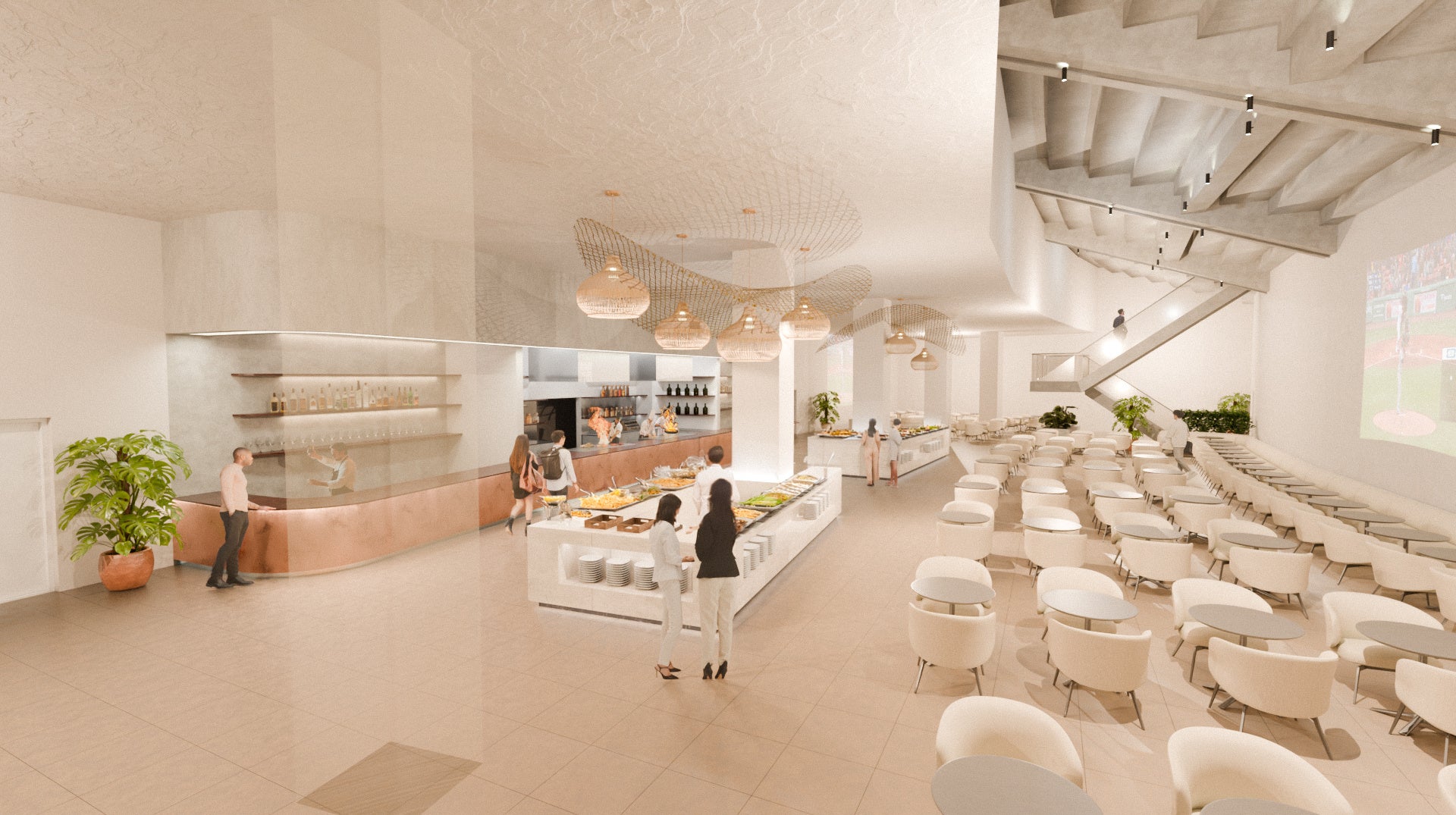 さらに、フィールドレベルのバックネット裏エリアには、出来立ての食事を楽しめるライブキッチン、多彩なグルメやドリンクをオールインクルーシブで提供する「ラウンジ」、そして“自分の居場所”から臨場感あるプレーを間近に楽しめる「VIPルーム」の新設を計画しています。