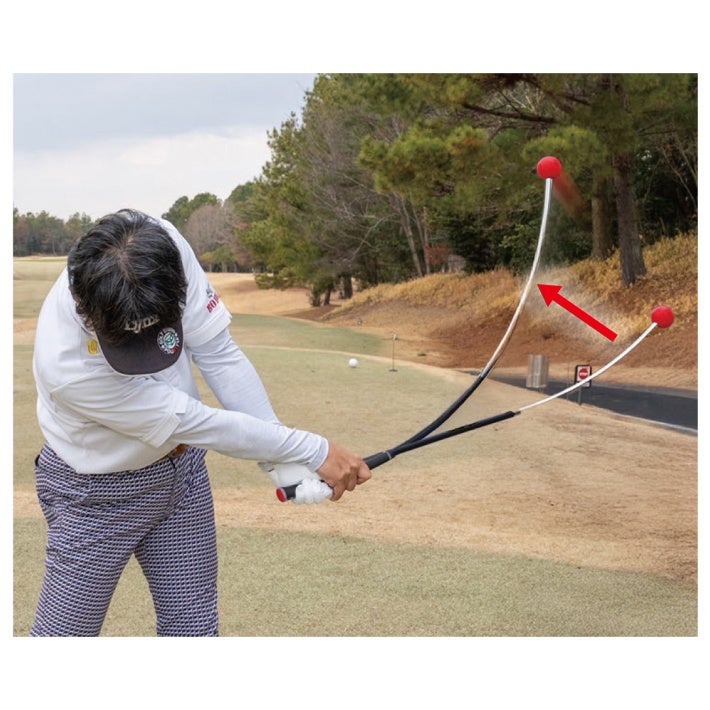 クラブローテーションの感覚がつかみやすい前作の利点に加え、シャフトがしなる新設計。 しっかりとした重みを感じ、理想のスイングプレーンを習得可能。 逆しなりを活かし、正しいテークバックと自然なシャロー軌道を実現!