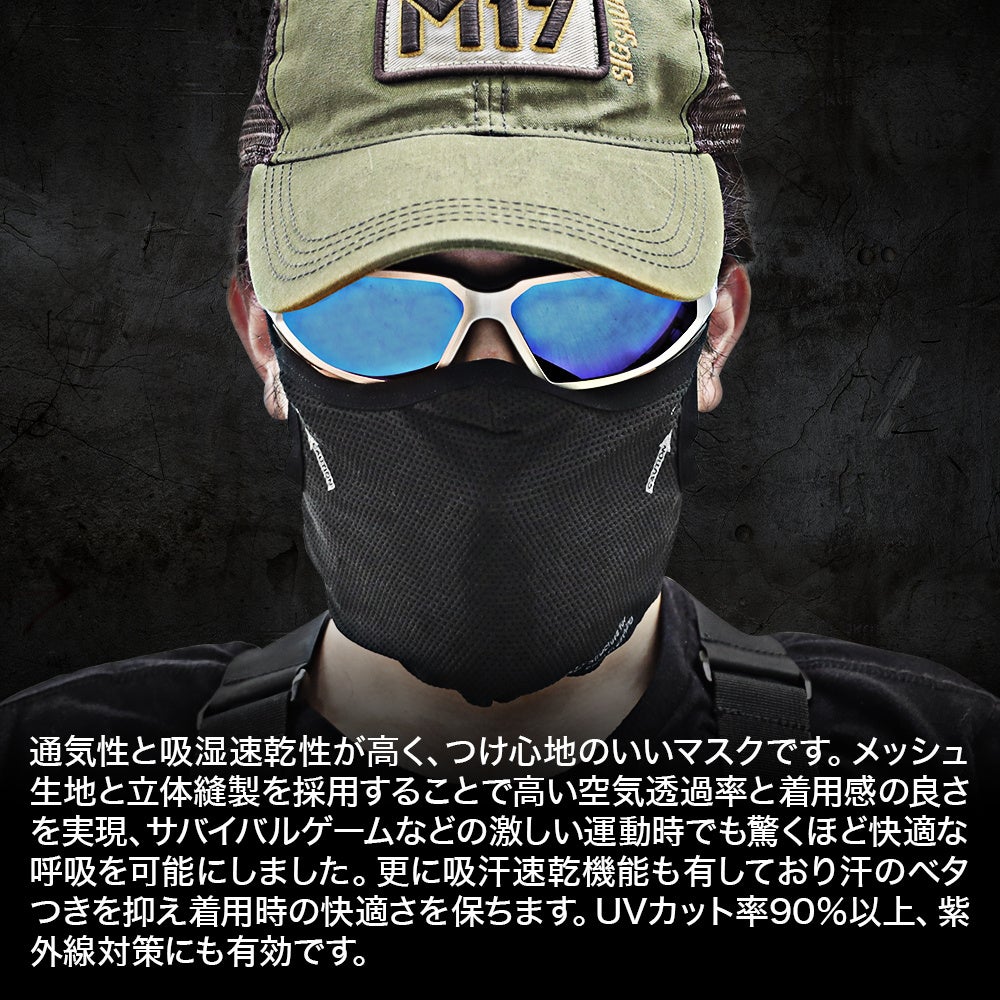 サバイバルゲームやミリタリー装備の定番。曇り対策・快適性・通気性を追求したスポーツ対応フェイスガードが、マラソンやトレイルランニングでも実力を発揮します。私生活でも使用することができる万能型マスク誕生