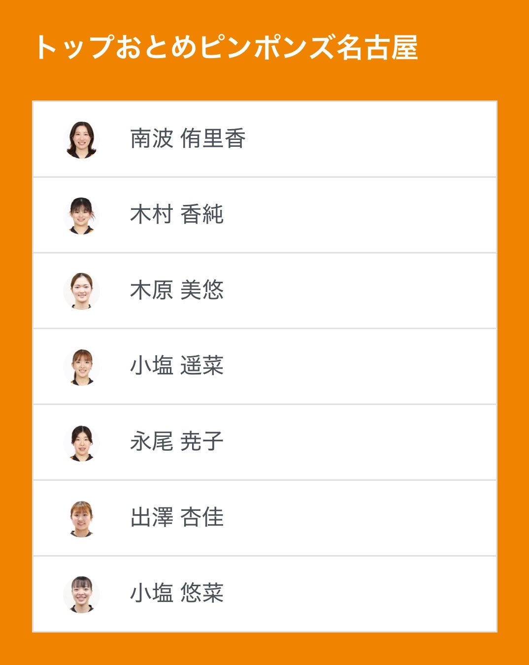 ノジマTリーグ 2025-2026シーズン 公式戦 12月20日(土)開催 九州カリーナ vs トップおとめピンポンズ名古屋のベンチ入り選手を発表いたします。