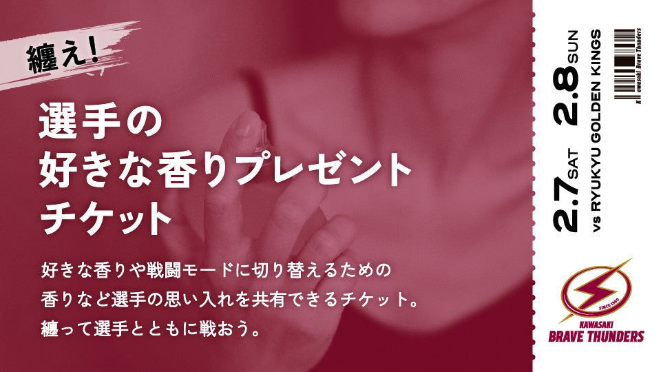 選手の「好きな香り」や「戦闘モードの香り」など、思い入れのある香りを体験できるチケットです。サンダースファミリーの皆さんの好きな選手について、もっと深く知っていただける貴重な機会です。