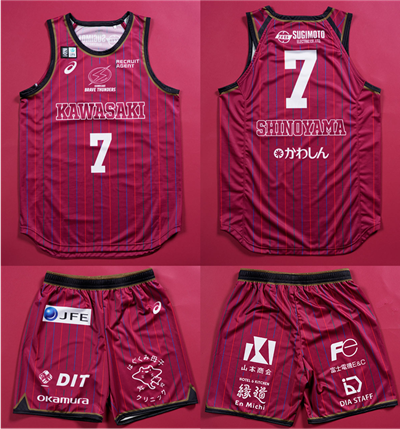 川崎市のブランドメッセージ「Colors, Future! いろいろって、未来。」を表現する赤・緑・青の光の三原色をデザイン全体に採用しました。正面のロゴの掲出については、キャリア教育や多文化共生等の取り組みを推進し世界と繋がる未来を目指していくことを川崎ブレイブサンダースのグローバトップパートナーである 株式会社ミツトヨ(本社:川崎市高津区、代表取締役社長沼田恵明以下:ミツトヨ)に御賛同いただき、スポンサー企業ロゴから「KAWASAKI」ロゴへの変更が実現しました。そして、「KAWASAKI」を胸に掲出することで、川崎を代表するグローバル企業であるミツトヨとともに地域の誇りとなるクラブになる決意を表現しています。