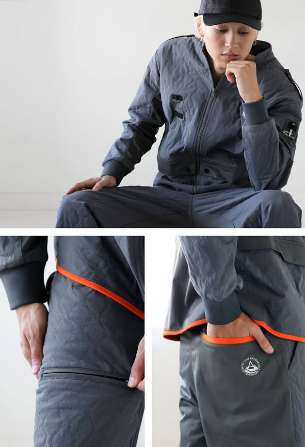 ANTIQAU GOLF と STCH の知見が加わることで、スポーツウェアに求められる機能性と、ワークシーンに必要な造形・設計力が融合。
